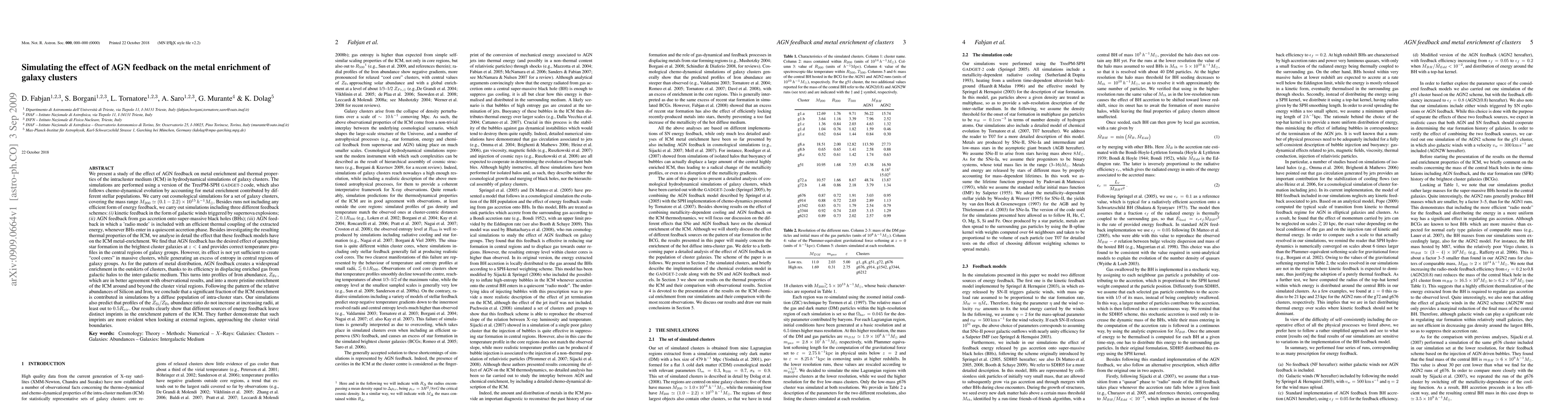 This study investigates the impact of AGN feedback on metal enrichment and thermal properties in galaxy clusters using cosmological simulations. Results show that AGN feedback can quench star formation and improve temperature profiles but is insufficient to create cool cores. It significantly enriches the outskirts of clusters by displacing enriched gas from galactic halos, leading to better agreement with observed iron abundance profiles.