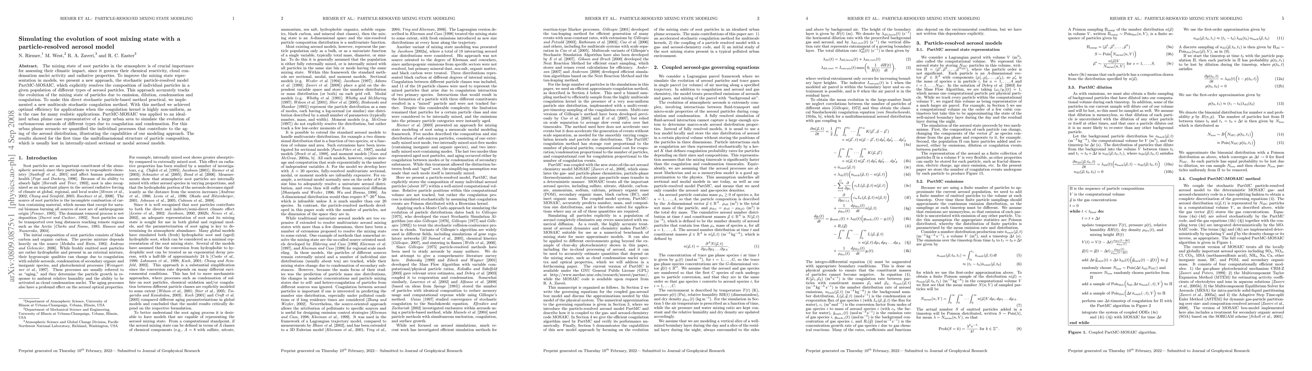 This paper introduces PartMC-MOSAIC, a particle-resolved aerosol model that accurately simulates the evolution of soot mixing states through emission, dilution, condensation, and coagulation. The model's multiscale stochastic coagulation method enhances efficiency for non-uniform coagulation kernels, revealing the multidimensional structure of particle composition in an urban plume scenario.