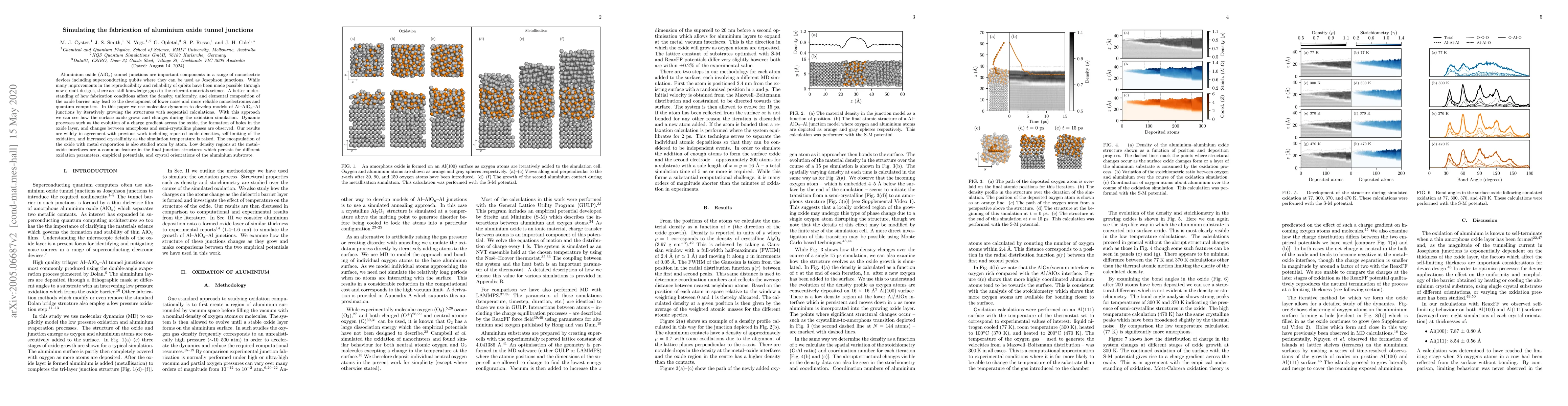 This paper uses molecular dynamics to simulate the fabrication of aluminium oxide tunnel junctions, focusing on the growth conditions' impact on the oxide barrier's density, uniformity, and elemental composition. The study reveals dynamic processes like charge gradient evolution, hole formation, and phase transitions, and identifies low-density regions at metal-oxide interfaces as a persistent feature.