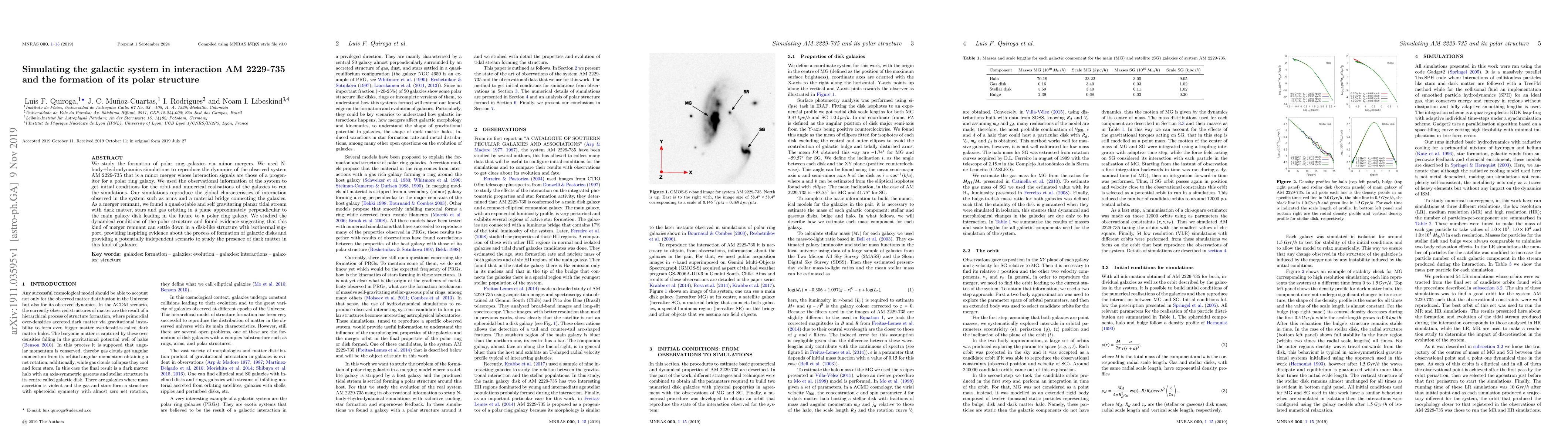 We study the formation of polar ring galaxies via minor mergers. We used N-body+hydrodynamics simulations to reproduce the dynamics of the observed system AM 2229-735 that is a minor merger whose interaction signals are those of a progenitor for a polar ring galaxy. We used the observational information of the system to get initial conditions for the orbit and numerical realisations of the galaxies to run the simulations. Our simulations reproduce the global characteristics of interaction observed in the system such as arms and a material bridge connecting the galaxies. As a merger remnant, we found a quasi-stable and self gravitating planar tidal stream with dark matter, stars and gas orbiting in a plane approximately perpendicular to the main galaxy disk leading in the future to a polar ring galaxy. We studied the dynamical conditions of the polar structure and found evidence suggesting that this kind of merger remnant can settle down in a disk-like structure with isothermal support, providing inspiring evidence about the process of formation of galactic disks and providing a potentially independent scenario to study the presence of dark matter in this kind of galaxies.