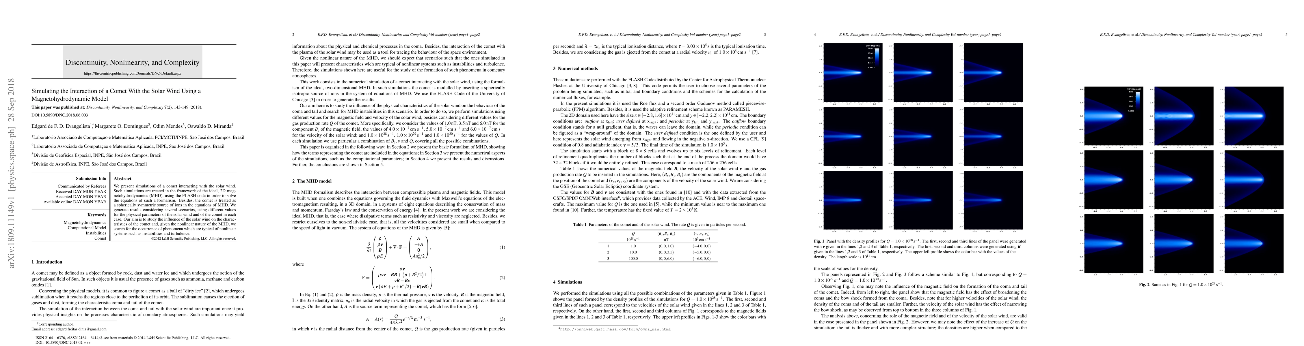 This paper uses 2D magnetohydrodynamic simulations to study the interaction between a comet and the solar wind, employing the FLASH code to model the comet as a source of ions. The study investigates the influence of solar wind parameters on comet characteristics and explores nonlinear phenomena like instabilities and turbulence.