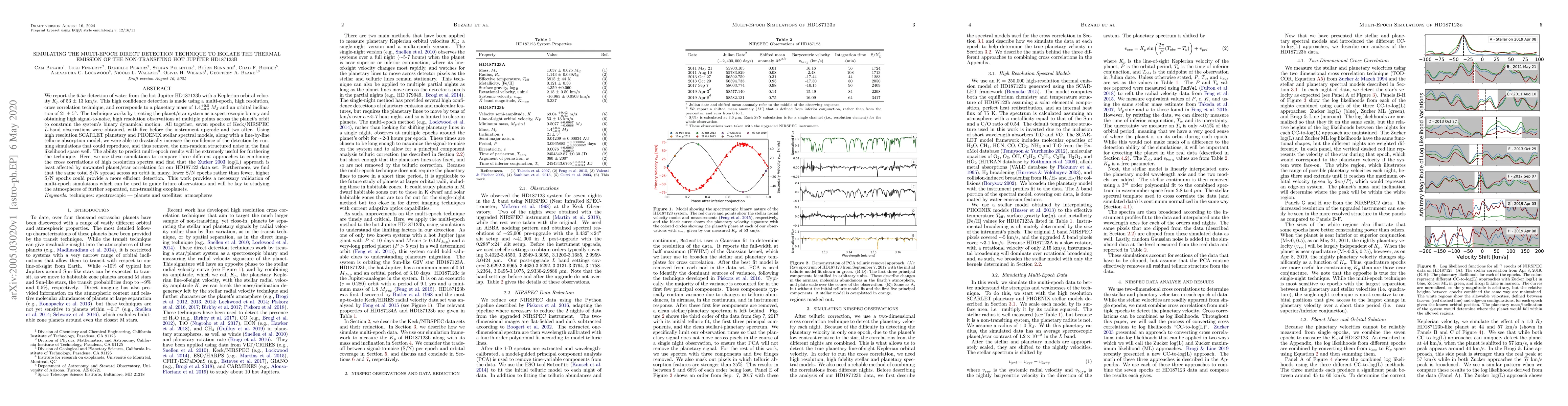 This paper reports a 6.5$\sigma$ detection of water in the atmosphere of the non-transiting hot Jupiter HD187123b using a multi-epoch spectroscopic technique. The study validates the technique by simulating observations to isolate the planet's thermal emission, demonstrating the efficiency of using many lower S/N epochs for detection.
