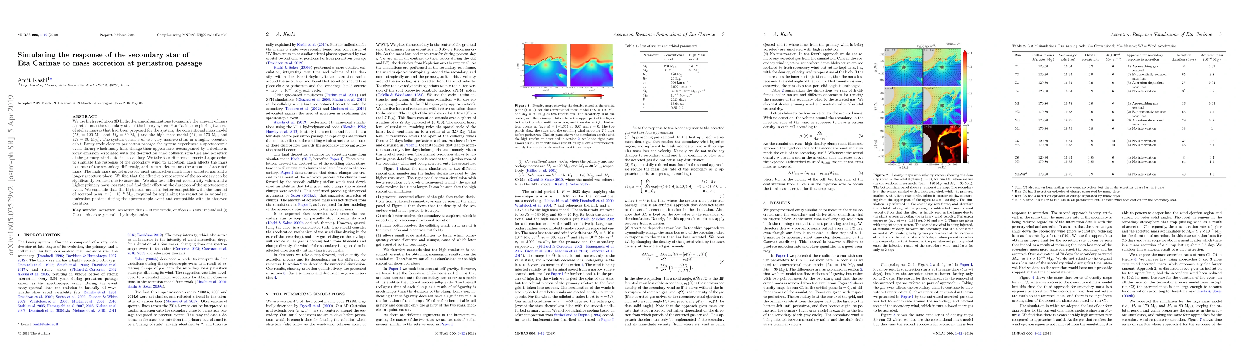 This research uses high-resolution 3D hydrodynamical simulations to determine the mass accretion onto the secondary star in Eta Carinae's binary system, comparing conventional and high mass models. The high mass model shows greater accreted mass and longer accretion phases, better explaining the spectroscopic event's observed duration.
