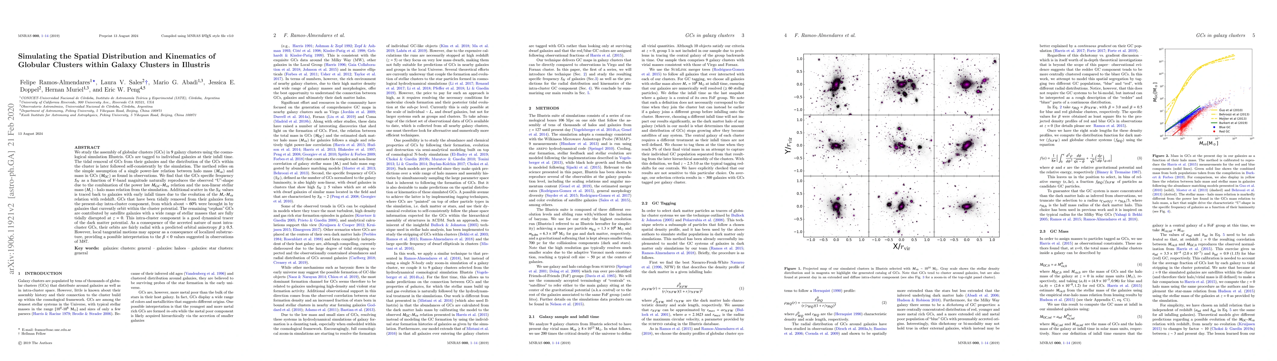 This study uses the Illustris simulation to model globular clusters' (GCs) spatial distribution and kinematics within galaxy clusters. GCs are assigned to galaxies at their infall time, and their subsequent tidal stripping and cluster distribution is tracked. The method assumes a power-law relation between halo mass and GC mass, replicating the observed 'U'-shape of specific frequency (S_N) versus magnitude. The research finds that intra-cluster GCs originate mainly from galaxies now within the cluster, with about 60% of them being accreted. These GCs exhibit radial orbits, contributing to the cluster's dark matter potential tracing. Local tangential motions could explain observed negative orbital anisotropy in some clusters.
