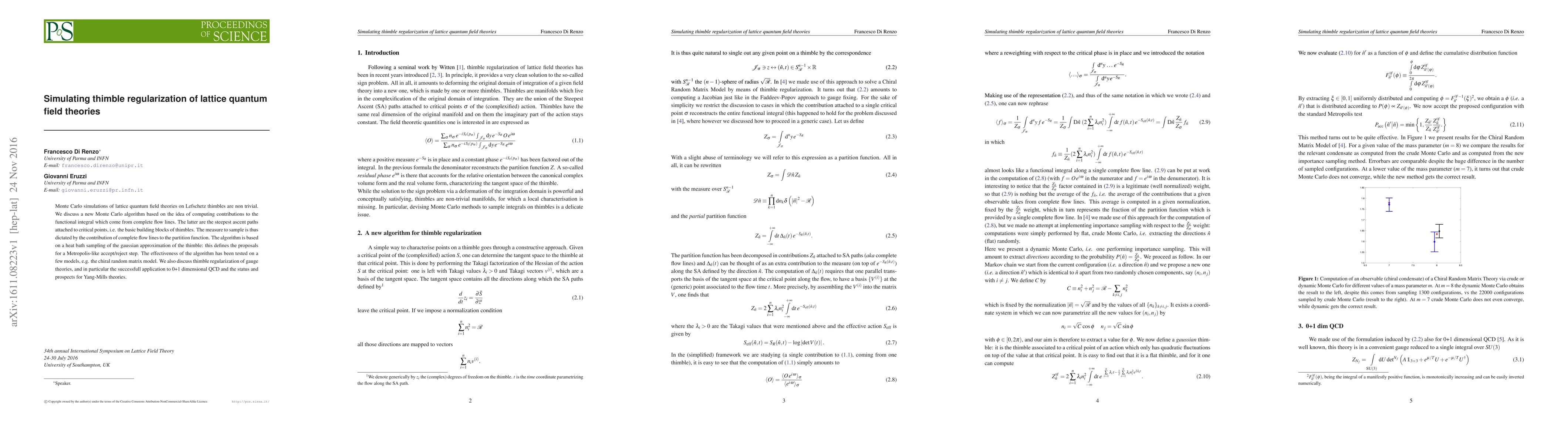 Monte Carlo simulations of lattice quantum field theories on Lefschetz thimbles are non trivial. We discuss a new Monte Carlo algorithm based on the idea of computing contributions to the functional integral which come from complete flow lines. The latter are the steepest ascent paths attached to critical points, i.e. the basic building blocks of thimbles. The measure to sample is thus dictated by the contribution of complete flow lines to the partition function. The algorithm is based on a heat bath sampling of the gaussian approximation of the thimble: this defines the proposals for a Metropolis-like accept/reject step. The effectiveness of the algorithm has been tested on a few models, e.g. the chiral random matrix model. We also discuss thimble regularization of gauge theories, and in particular the successfull application to 0+1 dimensional QCD and the status and prospects for Yang-Mills theories.