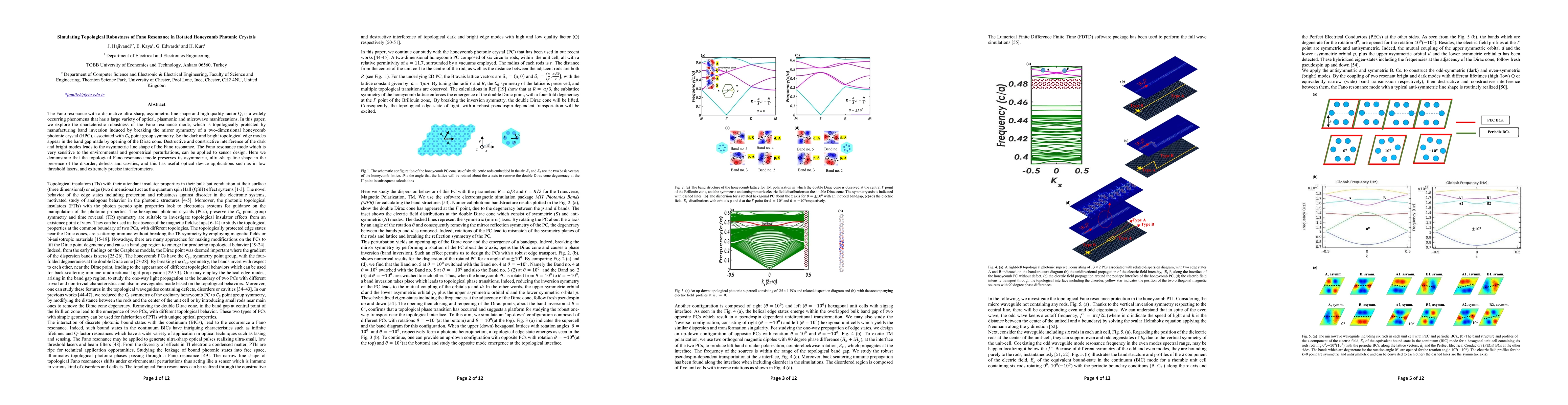 The Fano resonance with a distinctive ultra-sharp, asymmetric line shape and high quality factor Q, is a widely occurring phenomena that has a large variety of optical, plasmonic and microwave manifestations. In this paper, we explore the characteristic robustness of the Fano resonance mode, which is topologically protected by manufacturing band inversion induced by breaking the mirror symmetry of a two-dimensional honeycomb photonic crystal (HPC), associated with C_6 point group symmetry. So the dark and bright topological edge modes appear in the band gap made by opening of the Dirac cone. Destructive and constructive interference of the dark and bright modes leads to the asymmetric line shape of the Fano resonance. The Fano resonance mode which is very sensitive to the environmental and geometrical perturbations, can be applied to sensor design. Here we demonstrate that the topological Fano resonance mode preserves its asymmetric, ultra-sharp line shape in the presence of the disorder, defects and cavities, and this has useful optical device applications such as in low threshold lasers, and extremely precise interferometers