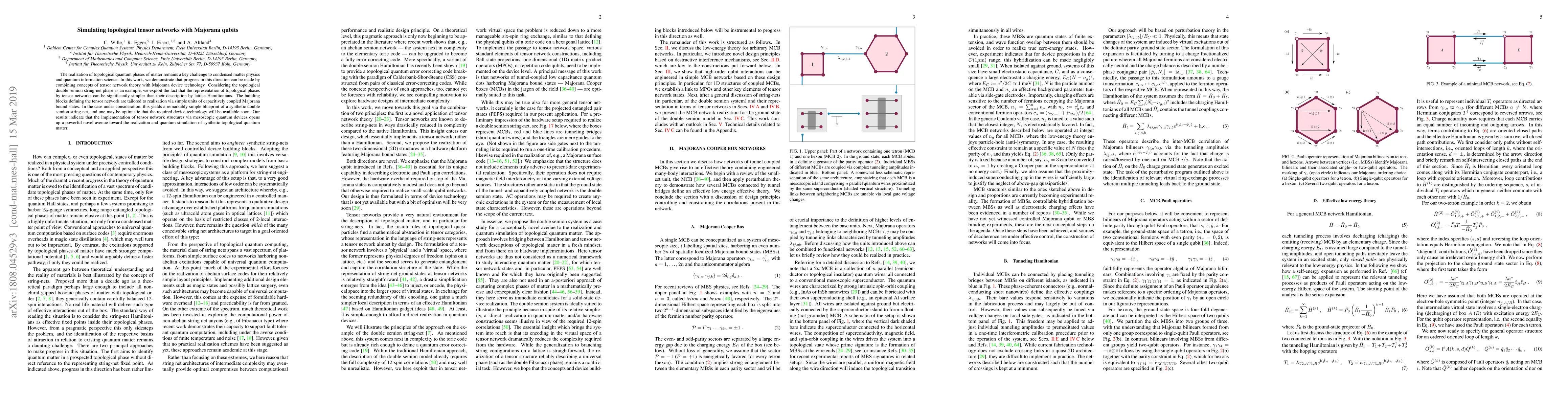 The realization of topological quantum phases of matter remains a key challenge to condensed matter physics and quantum information science. In this work, we demonstrate that progress in this direction can be made by combining concepts of tensor network theory with Majorana device technology. Considering the topological double semion string-net phase as an example, we exploit the fact that the representation of topological phases by tensor networks can be significantly simpler than their description by lattice Hamiltonians. The building blocks defining the tensor network are tailored to realization via simple units of capacitively coupled Majorana bound states. In the case under consideration, this yields a remarkably simple blueprint of a synthetic double semion string-net, and one may be optimistic that the required device technology will be available soon. Our results indicate that the implementation of tensor network structures via mesoscopic quantum devices opens up a powerful novel avenue toward the realization and quantum simulation of synthetic topological quantum matter.