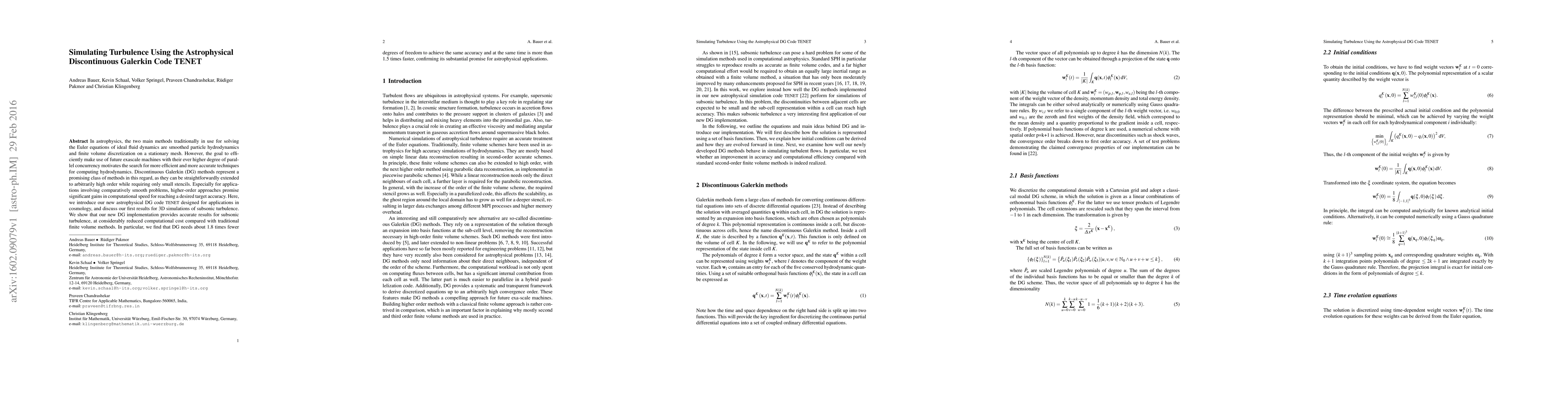 In astrophysics, the two main methods traditionally in use for solving the Euler equations of ideal fluid dynamics are smoothed particle hydrodynamics and finite volume discretization on a stationary mesh. However, the goal to efficiently make use of future exascale machines with their ever higher degree of parallel concurrency motivates the search for more efficient and more accurate techniques for computing hydrodynamics. Discontinuous Galerkin (DG) methods represent a promising class of methods in this regard, as they can be straightforwardly extended to arbitrarily high order while requiring only small stencils. Especially for applications involving comparatively smooth problems, higher-order approaches promise significant gains in computational speed for reaching a desired target accuracy. Here, we introduce our new astrophysical DG code TENET designed for applications in cosmology, and discuss our first results for 3D simulations of subsonic turbulence. We show that our new DG implementation provides accurate results for subsonic turbulence, at considerably reduced computational cost compared with traditional finite volume methods. In particular, we find that DG needs about 1.8 times fewer degrees of freedom to achieve the same accuracy and at the same time is more than 1.5 times faster, confirming its substantial promise for astrophysical applications.