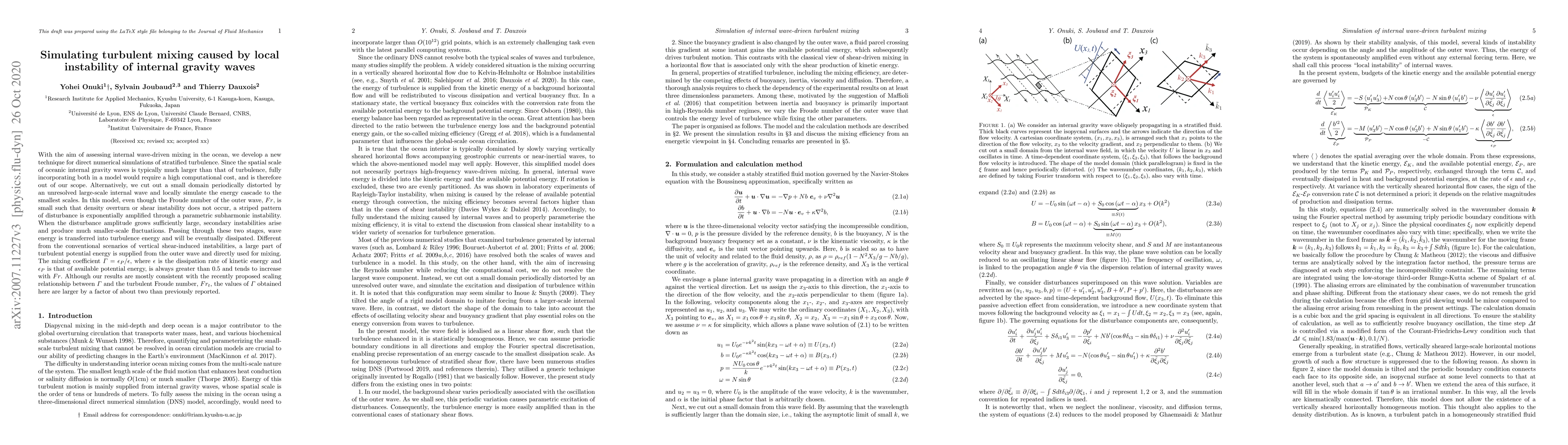 This paper develops a new simulation technique to study internal wave-driven turbulence in the ocean, focusing on local instability rather than full-scale modeling. The study finds that energy from large-scale internal waves can significantly contribute to turbulence, with a mixing coefficient greater than 0.5, twice as large as previously reported.