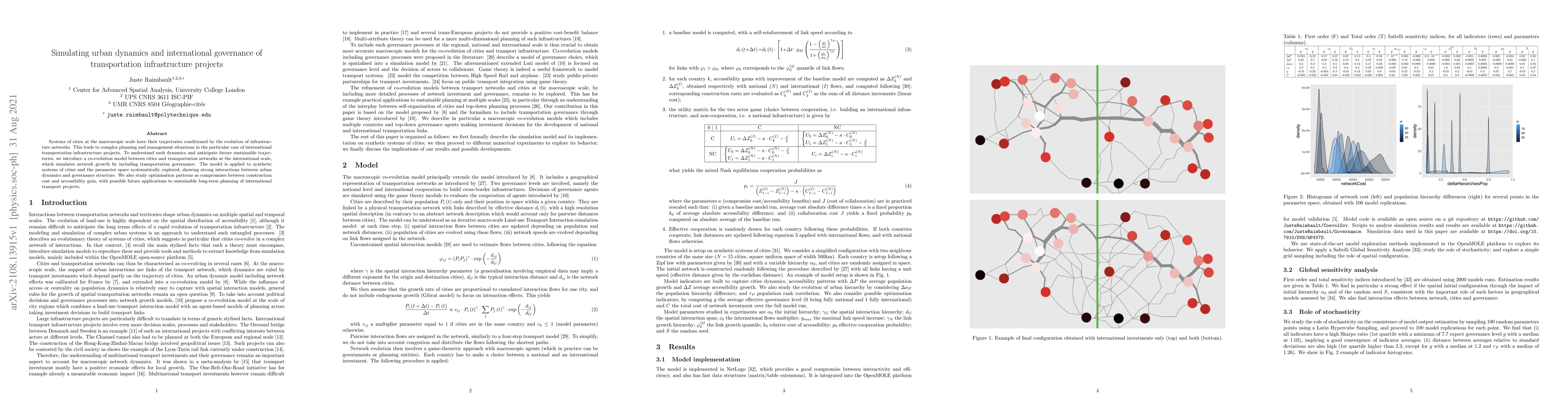 This paper introduces a co-evolution model to simulate the dynamics between cities and international transportation networks, emphasizing the role of governance in shaping infrastructure growth. The study explores interactions between urban development and governance structures, and examines optimization strategies balancing construction costs and accessibility gains for sustainable long-term planning.
