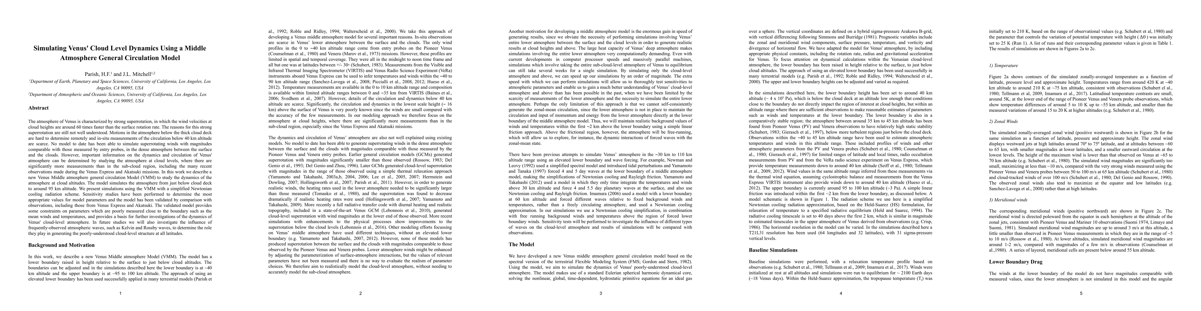A new model simulates Venus' atmosphere from cloud deck to 95 km altitude, providing constraints on parameters like mean winds and temperatures, and laying the groundwork for further studies of the cloud-level atmosphere.