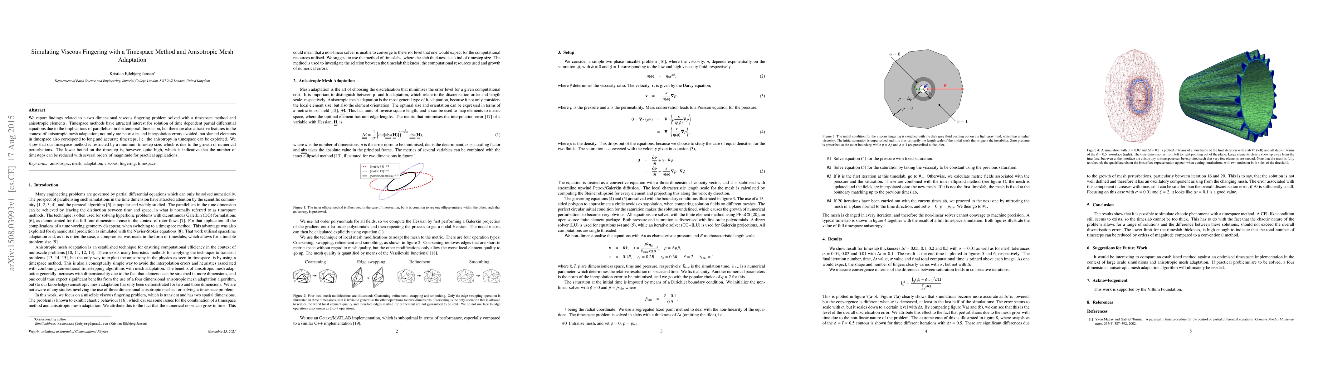The paper presents a novel approach to simulating viscous fingering using a timespace method with anisotropic elements, exploiting the anisotropy in timespace for long and accurate timesteps.