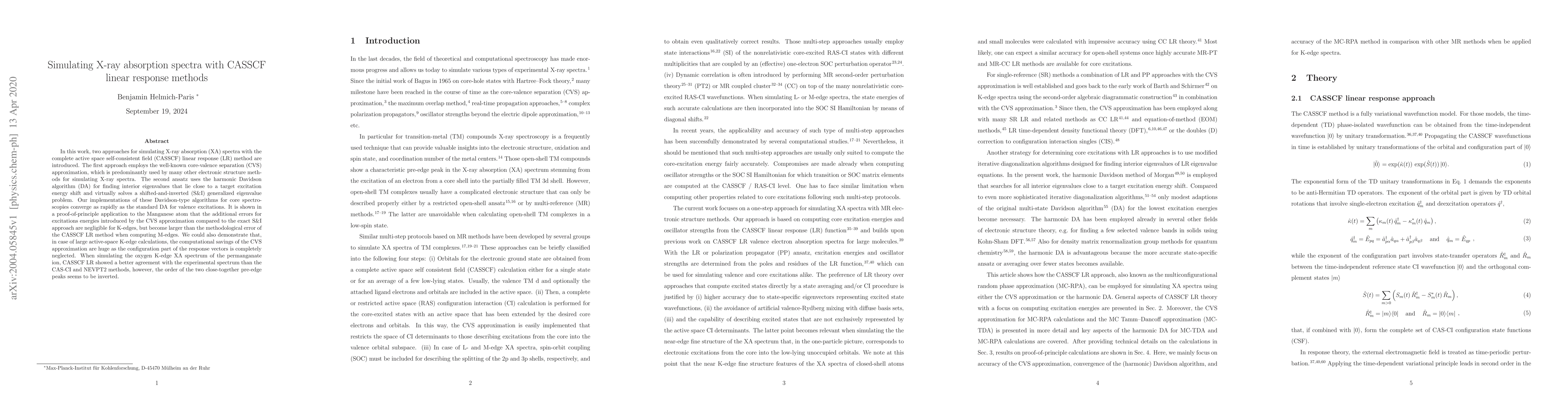 This paper introduces two methods for simulating X-ray absorption spectra using CASSCF linear response theory: one employing the CVS approximation and the other using the Davidson algorithm for shifted-and-inverted eigenvalue problems. The CVS method shows negligible error for K-edges but larger errors for M-edges compared to the exact approach, while providing significant computational savings for large active-space K-edge calculations.
