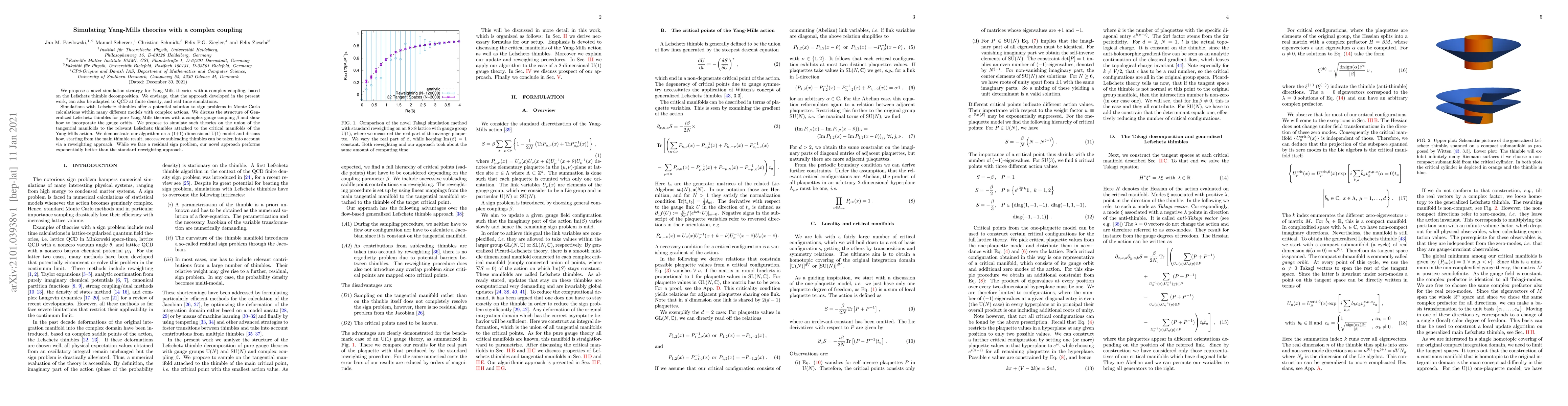 The paper proposes a new simulation strategy for Yang-Mills theories with complex coupling using Lefschetz thimble decomposition, demonstrating improved performance over standard reweighting methods in a (1+1)-dimensional U(1) model. This method could potentially be applied to QCD at finite density and real time simulations.