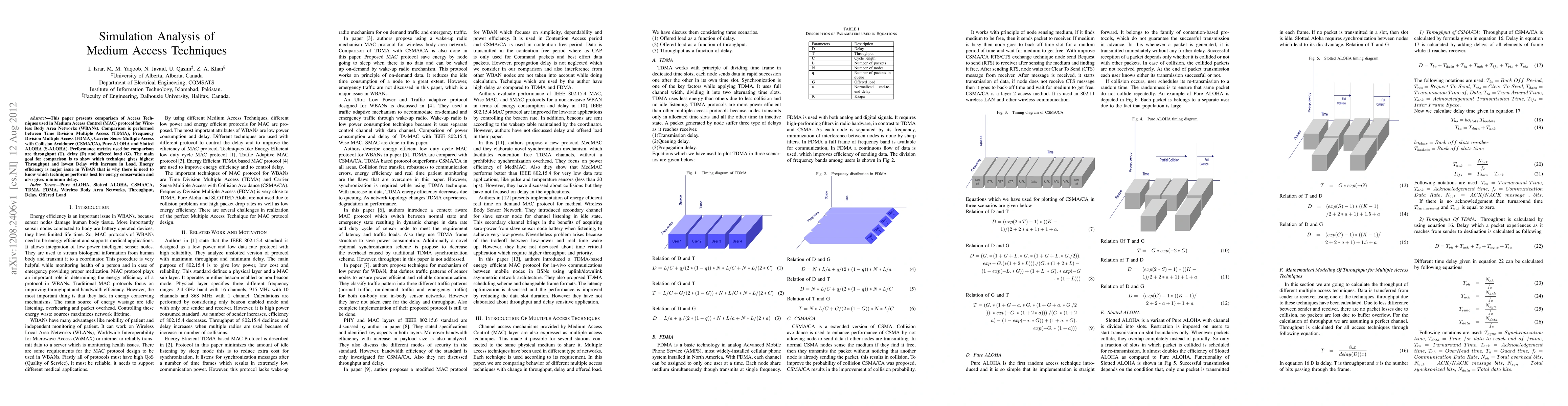 This paper compares different Medium Access Techniques in Wireless Body Area Networks to determine which one provides highest throughput and lowest delay while conserving energy.