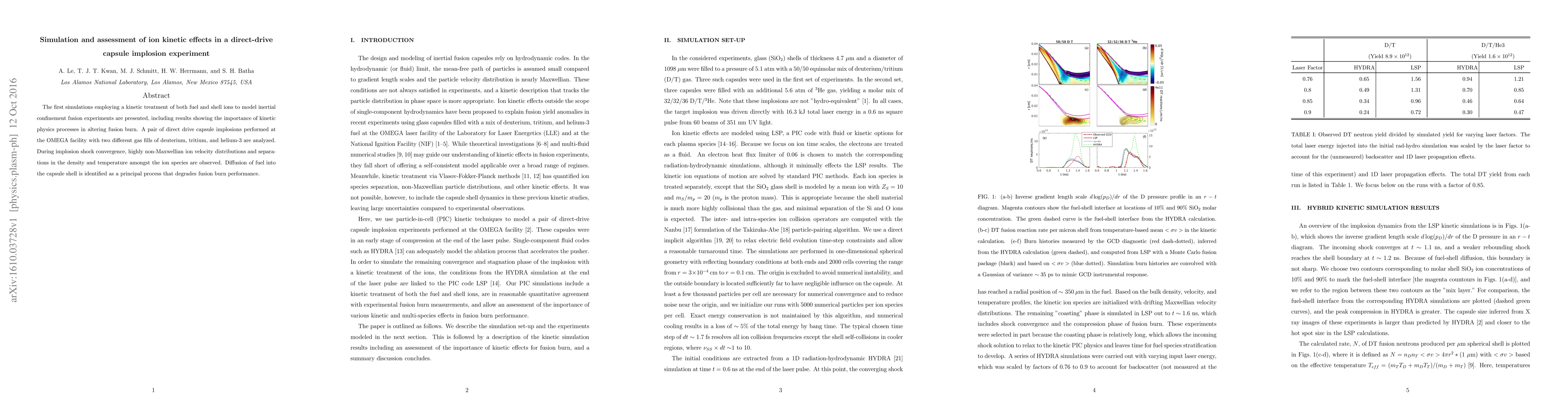 This paper presents the first simulations of inertial confinement fusion experiments using a kinetic treatment of both fuel and shell ions, highlighting the significance of kinetic physics in altering fusion burn. The study analyzes direct-drive capsule implosions at the OMEGA facility, revealing non-Maxwellian ion velocity distributions and identifying fuel diffusion into the capsule shell as a major factor degrading fusion performance.