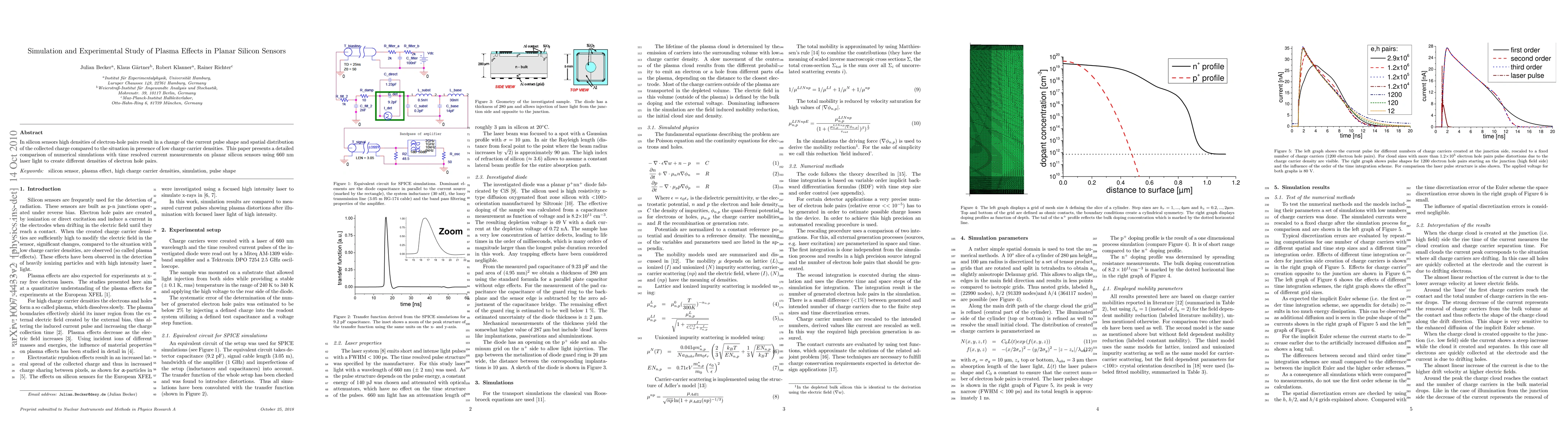 In silicon sensors high densities of electron-hole pairs result in a change of the current pulse shape and spatial distribution of the collected charge compared to the situation in presence of low charge carrier densities. This paper presents a detailed comparison of numerical simulations with time resolved current measurements on planar silicon sensors using 660~nm laser light to create different densities of electron hole pairs.