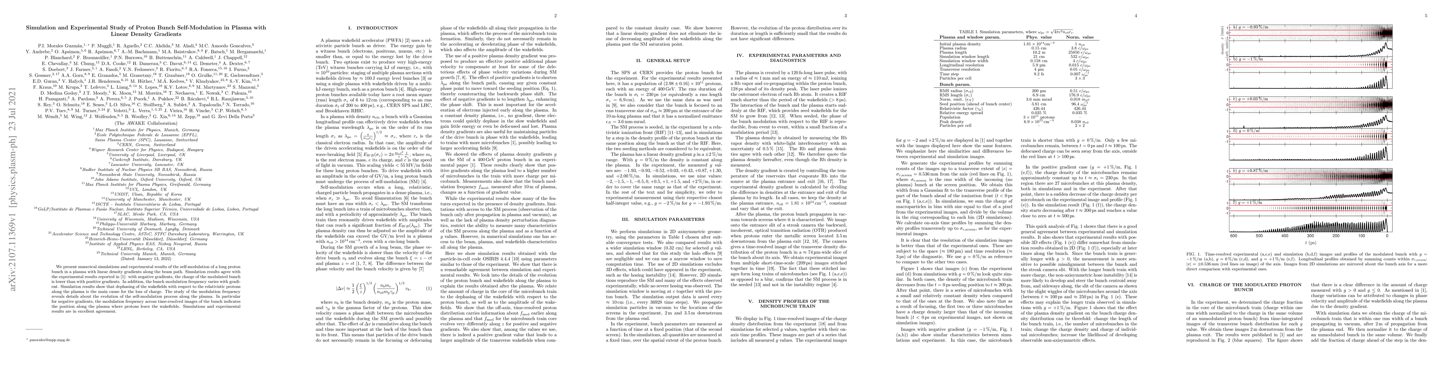 This paper investigates the self-modulation of a long proton bunch in a plasma with linear density gradients, revealing that negative gradients lead to lower modulated bunch charge compared to positive gradients. Simulation results closely match experimental findings, highlighting wakefield dephasing as the primary cause of charge loss.