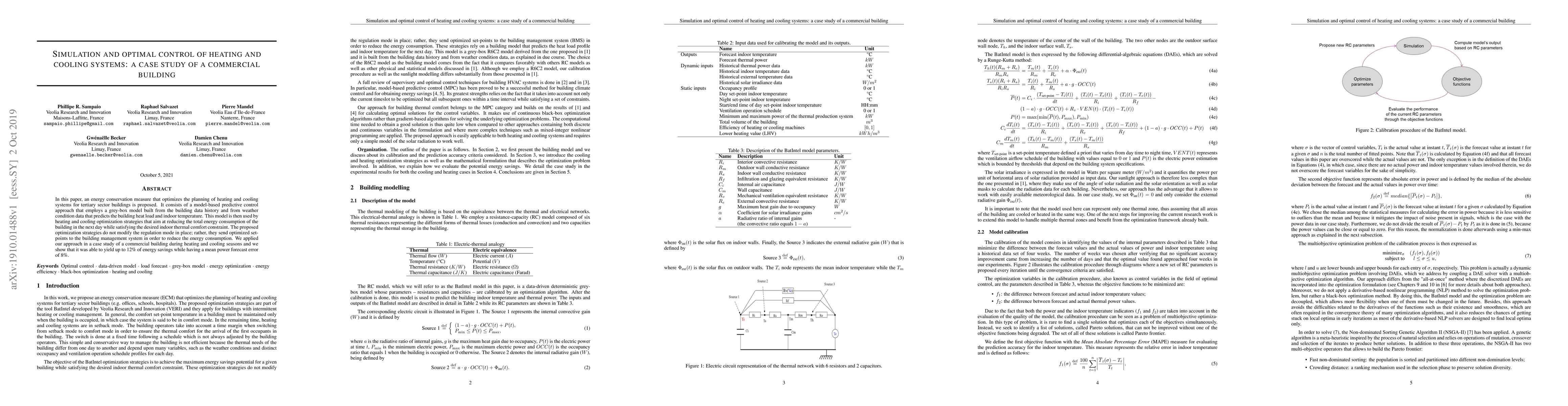 This paper proposes a model-based predictive control approach for optimizing heating and cooling systems in commercial buildings, achieving up to 12% energy savings without altering existing regulation modes. The method uses a grey-box model incorporating historical building and weather data to predict heat loads and indoor temperatures.