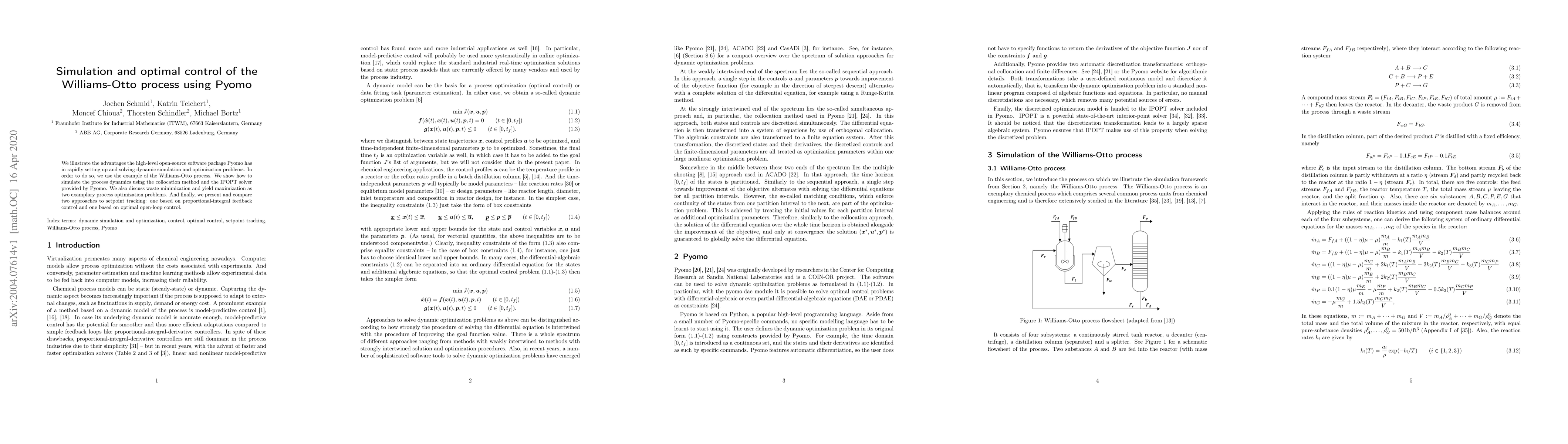 This paper demonstrates the use of Pyomo for simulating and optimizing the Williams-Otto process, showcasing its advantages in solving dynamic simulation and optimization problems, and presenting two approaches to setpoint tracking.