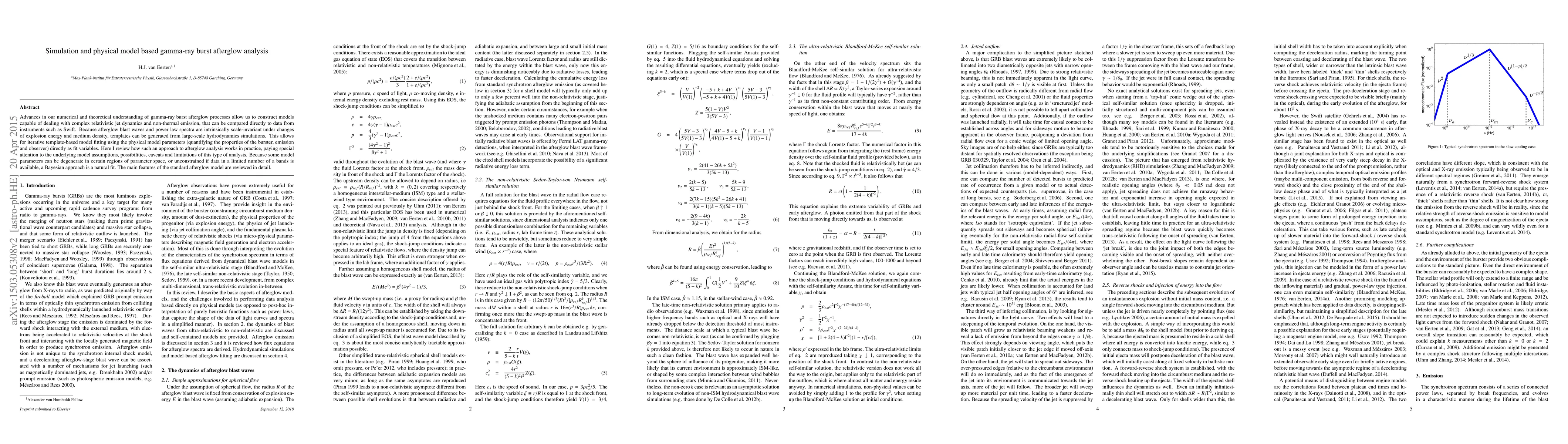 This paper reviews the use of large-scale hydrodynamics simulations and physical models to analyze gamma-ray burst afterglows, focusing on relativistic jet dynamics and non-thermal emission. It discusses the application of Bayesian methods to address model parameter degeneracies and limitations in parameter space.