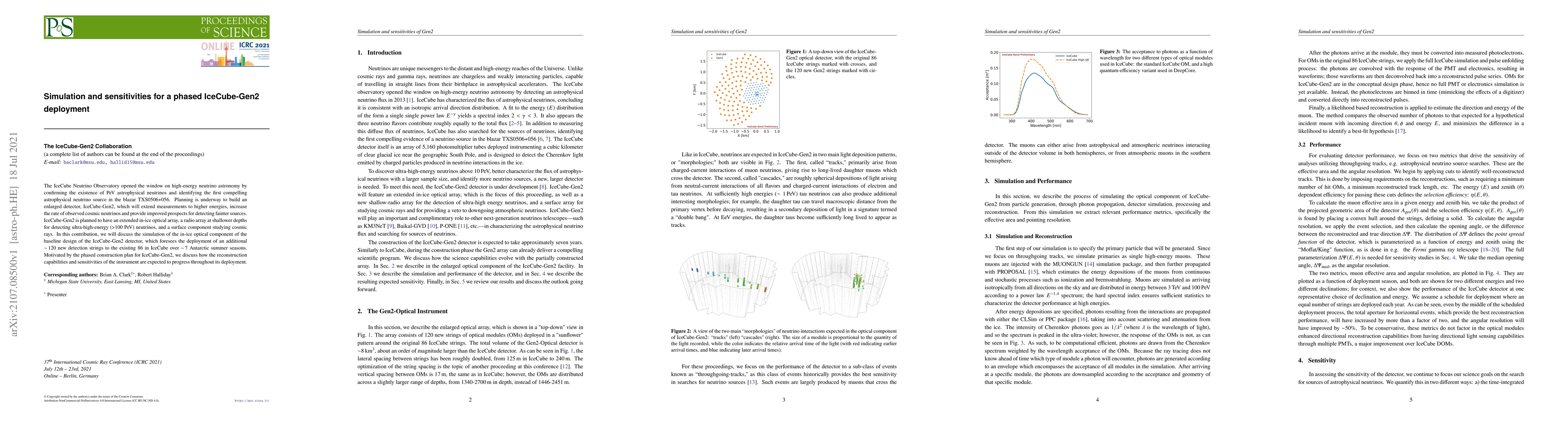 This paper discusses the simulation and expected sensitivities of the in-ice optical component for the phased deployment of IceCube-Gen2, an upgraded version of the IceCube Neutrino Observatory, which aims to extend neutrino measurements to higher energies and improve detection of fainter sources. The phased construction plan involves adding ~120 new detection strings over seven Antarctic summer seasons.