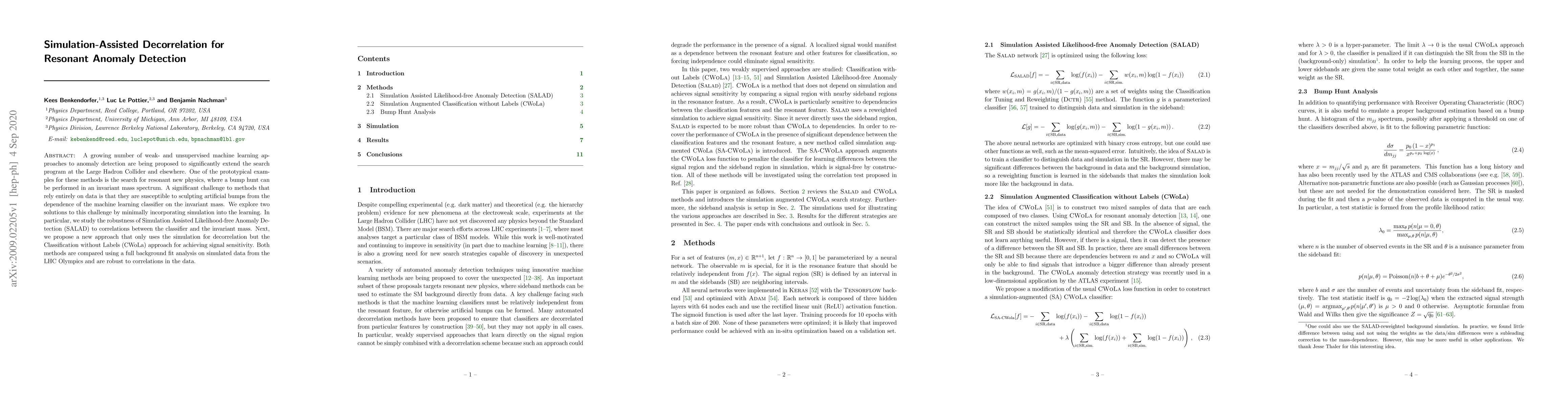 A growing number of weak- and unsupervised machine learning approaches to anomaly detection are being proposed to significantly extend the search program at the Large Hadron Collider and elsewhere. One of the prototypical examples for these methods is the search for resonant new physics, where a bump hunt can be performed in an invariant mass spectrum. A significant challenge to methods that rely entirely on data is that they are susceptible to sculpting artificial bumps from the dependence of the machine learning classifier on the invariant mass. We explore two solutions to this challenge by minimally incorporating simulation into the learning. In particular, we study the robustness of Simulation Assisted Likelihood-free Anomaly Detection (SALAD) to correlations between the classifier and the invariant mass. Next, we propose a new approach that only uses the simulation for decorrelation but the Classification without Labels (CWoLa) approach for achieving signal sensitivity. Both methods are compared using a full background fit analysis on simulated data from the LHC Olympics and are robust to correlations in the data.