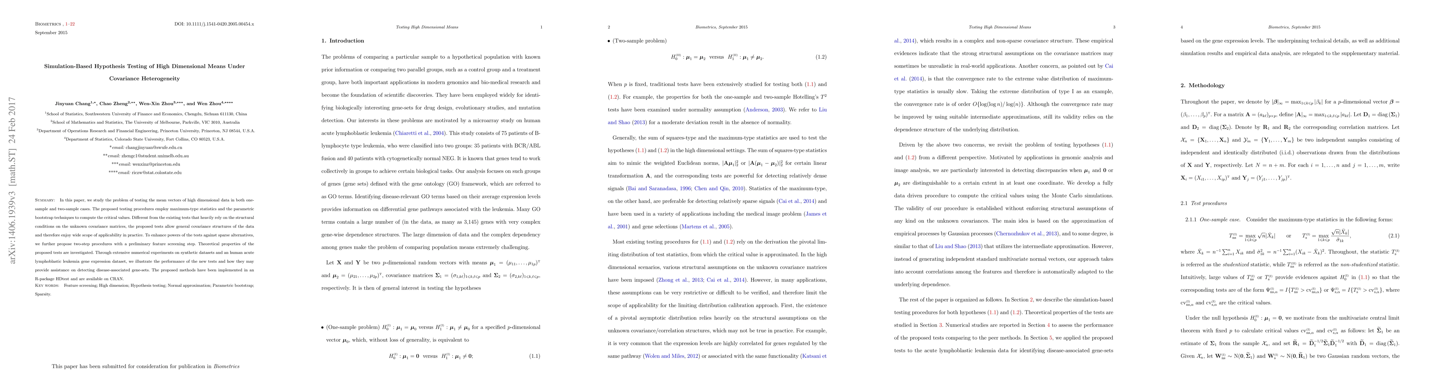 Researchers developed new statistical tests to detect differences in high-dimensional data with varying covariance structures, offering improved power against sparse alternatives and practical applicability.