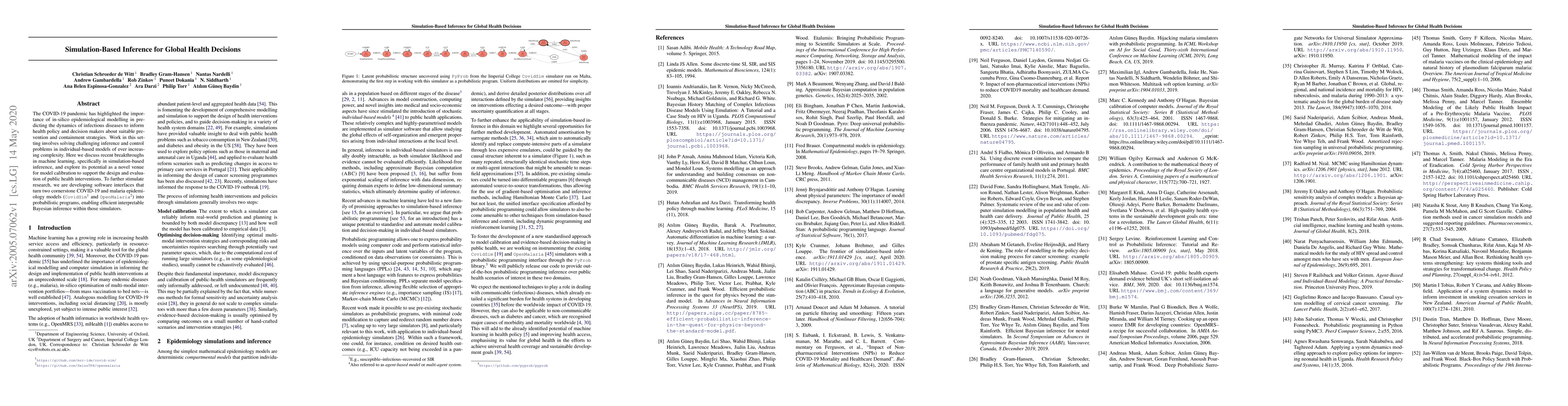 This paper explores the use of simulation-based inference and machine learning to enhance epidemiological modelling for global health decisions, focusing on COVID-19 and malaria. It introduces software interfaces for efficient Bayesian inference within complex individual-based models to support public health intervention design.
