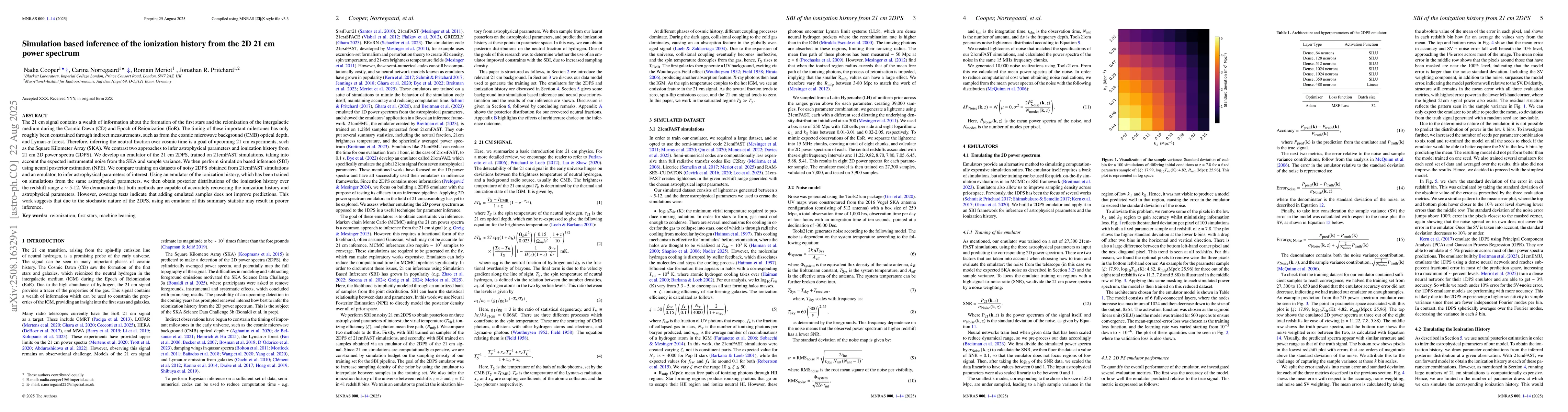 The 21 cm signal contains a wealth of information about the formation of the first stars and the reionization of the intergalactic medium during the Cosmic Dawn (CD) and Epoch of Reionization (EoR). The timing of these important milestones has only roughly been constrained through indirect measurements, such as from the cosmic microwave background (CMB) optical depth, and Lyman-$\alpha$ forest. Therefore, inferring the neutral fraction over cosmic time is a goal of upcoming 21 cm experiments, such as the Square Kilometer Array (SKA). We contrast two approaches to infer astrophysical parameters and ionization history from 21 cm 2D power spectra (2DPS). We develop an emulator of the 21 cm 2DPS, trained on 21cmFAST simulations, taking into account the expected instrumental noise from the SKA and sample variance. We then perform simulation based inference (SBI) using neural posterior estimation (NPE). We compare training on datasets of noisy 2DPS obtained from 21cmFAST simulations and an emulator, to infer astrophysical parameters of interest. Using an emulator of the ionization history, which has been trained on simulations from the same astrophysical parameters, we then obtain posterior distributions of the ionization history over the redshift range z $\sim$ 5-12. We demonstrate that both methods are capable of accurately recovering the ionization history and astrophysical parameters. However, coverage tests indicate that adding emulated samples does not improve predictions. This work suggests that due to the stochastic nature of the 2DPS, using an emulator of this summary statistic may result in poorer inference.