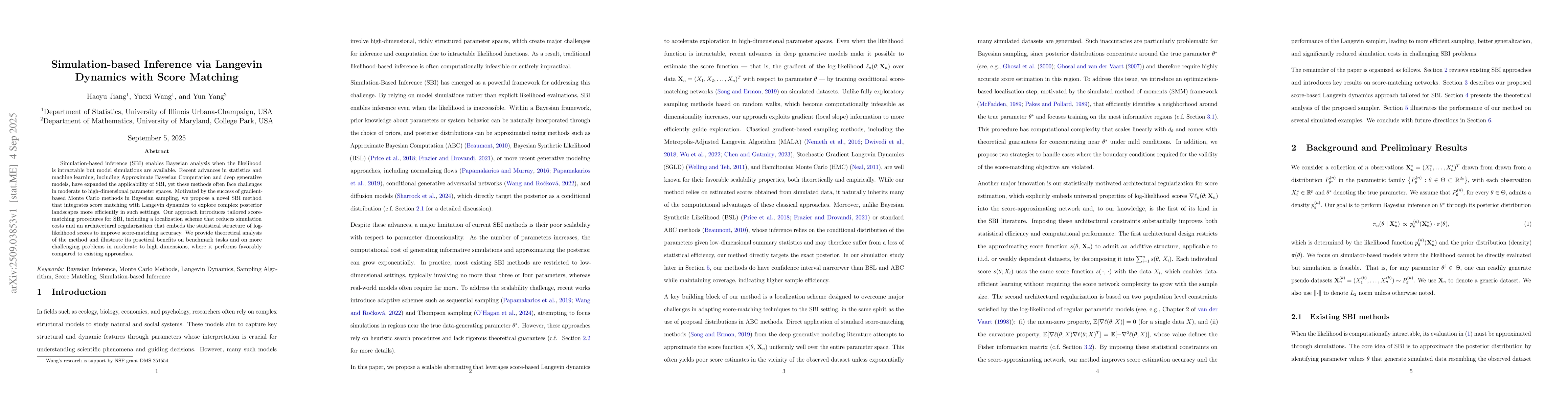 Simulation-based inference (SBI) enables Bayesian analysis when the likelihood is intractable but model simulations are available. Recent advances in statistics and machine learning, including Approximate Bayesian Computation and deep generative models, have expanded the applicability of SBI, yet these methods often face challenges in moderate to high-dimensional parameter spaces. Motivated by the success of gradient-based Monte Carlo methods in Bayesian sampling, we propose a novel SBI method that integrates score matching with Langevin dynamics to explore complex posterior landscapes more efficiently in such settings. Our approach introduces tailored score-matching procedures for SBI, including a localization scheme that reduces simulation costs and an architectural regularization that embeds the statistical structure of log-likelihood scores to improve score-matching accuracy. We provide theoretical analysis of the method and illustrate its practical benefits on benchmark tasks and on more challenging problems in moderate to high dimensions, where it performs favorably compared to existing approaches.