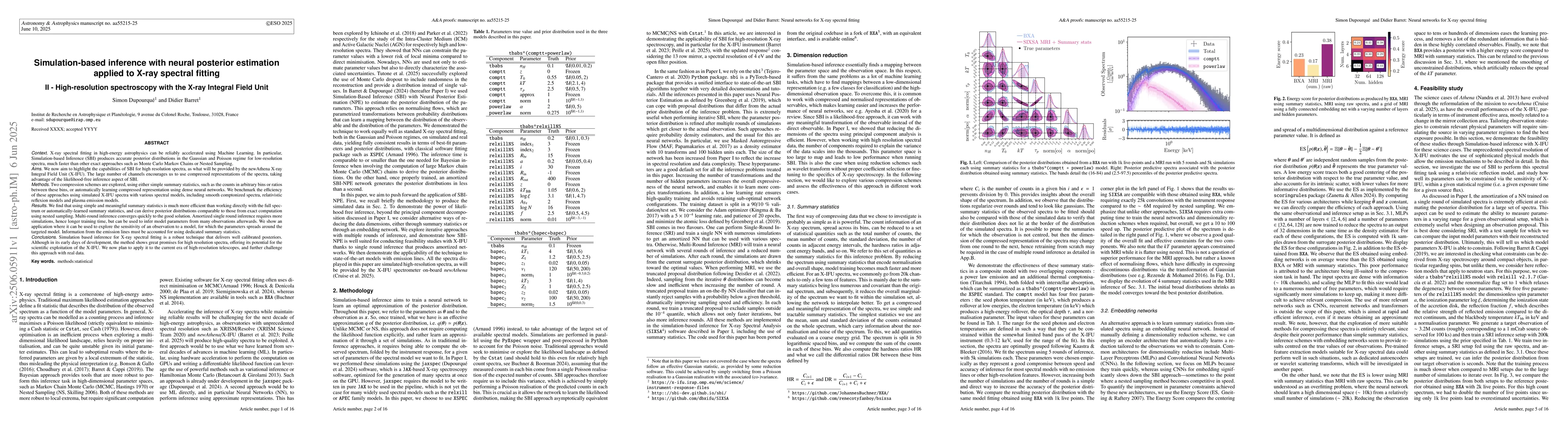 X-ray spectral fitting in high-energy astrophysics can be reliably accelerated using Machine Learning. In particular, Simulation-based Inference (SBI) produces accurate posterior distributions in the Gaussian and Poisson regime for low-resolution spectra, much faster than other exact approaches such as Monte Carlo Markov Chains or Nested Sampling. We now aim to highlight the capabilities of SBI for high-resolution spectra, as what will be provided by the newAthena X-ray Integral Field Unit (X-IFU). The large number of channels encourages us to use compressed representations of the spectra, taking advantage of the likelihood-free inference aspect of SBI. Two compression schemes are explored, using either simple summary statistics, such as the counts in arbitrary bins or ratios between these bins. We benchmark the efficiency of these approaches using simulated X-IFU spectra with various spectral models, including smooth comptonised spectra, relativistic reflexion models and plasma emission models. We find that using simple and meaningful summary statistics is much more efficient than working directly with the full spectrum, and can derive posterior distributions comparable to those from exact computation using nested sampling. Multi-round inference converges quickly to the good solution. Amortized single round inference requires more simulations, hence longer training time, but can be used to infer model parameters from many observations afterwards. Information from the emission lines must be accounted for using dedicated summary statistics. SBI for X-ray spectral fitting is a robust technique that delivers well calibrated posteriors. This approach shows great promises for high-resolution spectra, offering its potential for the scientific exploitation of the X-IFU. We now plan to apply it to the current era of high-resolution telescopes, and further challenge this approach with real data.