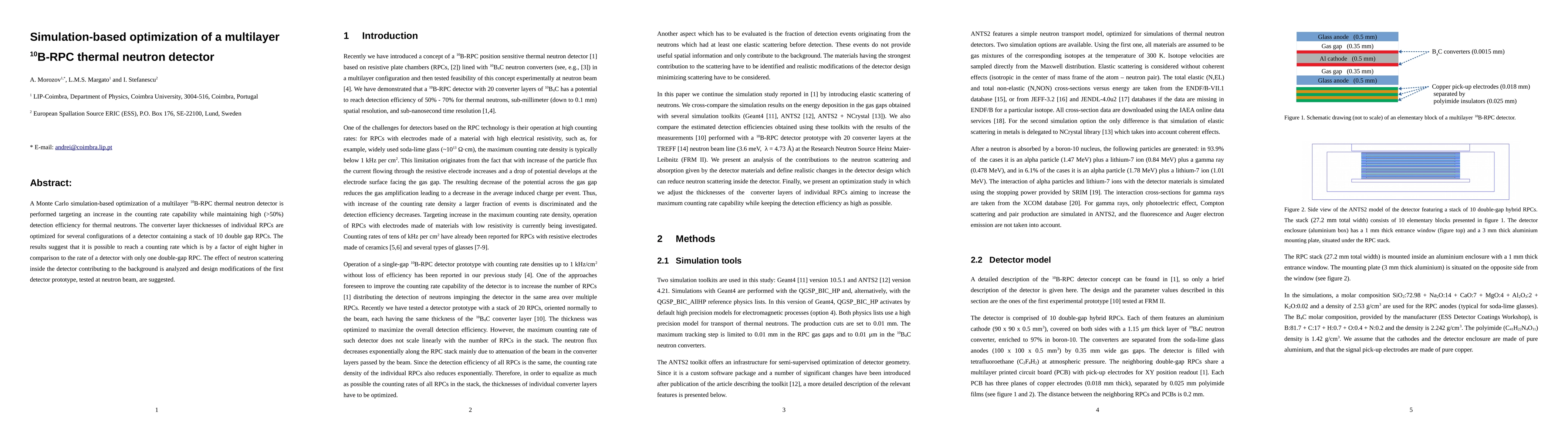 This paper optimizes a multilayer 10B-RPC thermal neutron detector using Monte Carlo simulations to enhance counting rates while preserving detection efficiency over 50%. The study suggests a significant eight-fold increase in counting rate compared to a single RPC detector, with proposed design modifications to mitigate neutron scattering background.