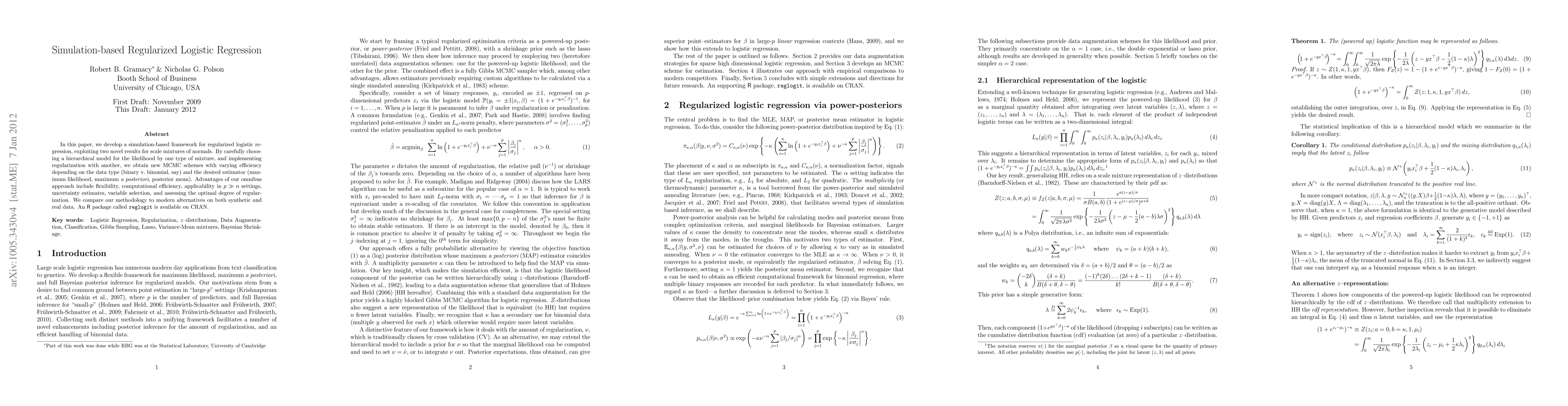 This paper introduces a simulation-based framework for regularized logistic regression, offering flexibility, computational efficiency, and uncertainty estimates, with applications in binary and binomial data types.