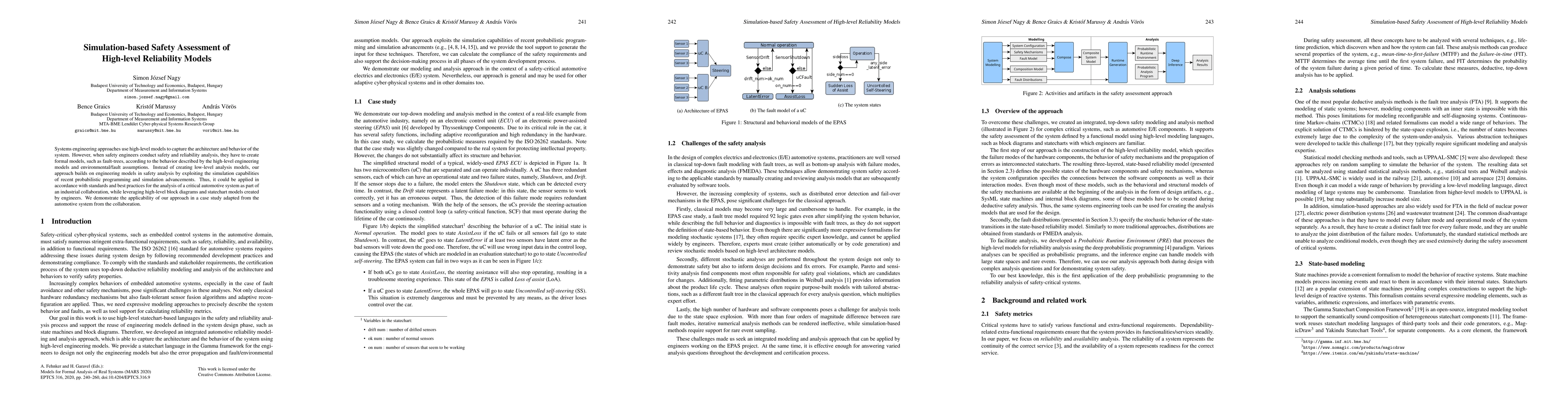 Systems engineering approaches use high-level models to capture the architecture and behavior of the system. However, when safety engineers conduct safety and reliability analysis, they have to create formal models, such as fault-trees, according to the behavior described by the high-level engineering models and environmental/fault assumptions. Instead of creating low-level analysis models, our approach builds on engineering models in safety analysis by exploiting the simulation capabilities of recent probabilistic programming and simulation advancements. Thus, it could be applied in accordance with standards and best practices for the analysis of a critical automotive system as part of an industrial collaboration, while leveraging high-level block diagrams and statechart models created by engineers. We demonstrate the applicability of our approach in a case study adapted from the automotive system from the collaboration.