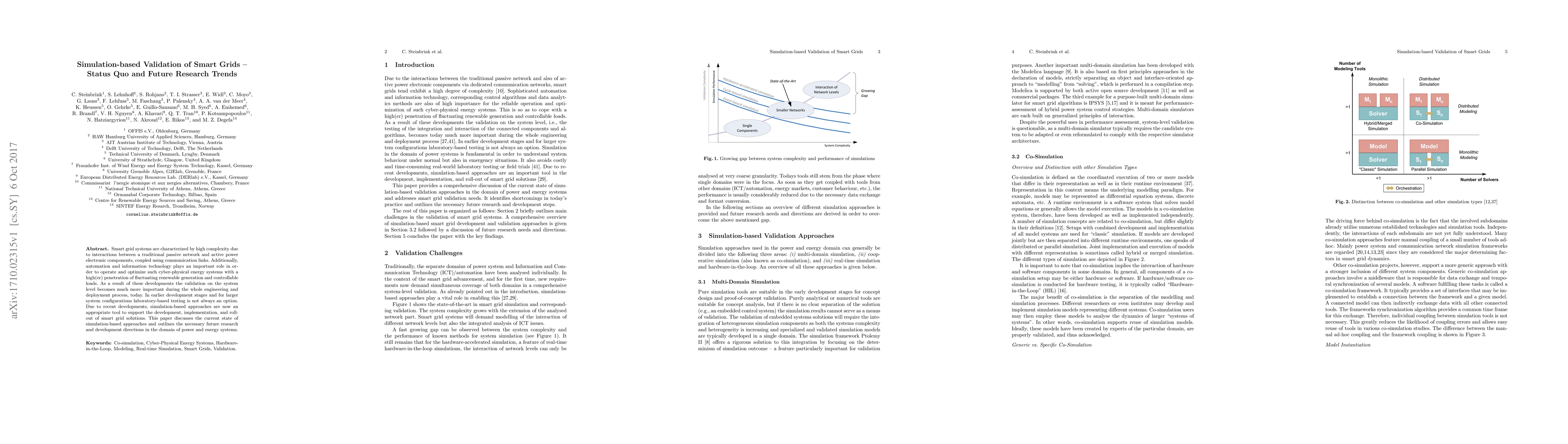 Smart grid systems are characterized by high complexity due to interactions between a traditional passive network and active power electronic components, coupled using communication links. Additionally, automation and information technology plays an important role in order to operate and optimize such cyber-physical energy systems with a high(er) penetration of fluctuating renewable generation and controllable loads. As a result of these developments the validation on the system level becomes much more important during the whole engineering and deployment process, today. In earlier development stages and for larger system configurations laboratory-based testing is not always an option. Due to recent developments, simulation-based approaches are now an appropriate tool to support the development, implementation, and roll-out of smart grid solutions. This paper discusses the current state of simulation-based approaches and outlines the necessary future research and development directions in the domain of power and energy systems.