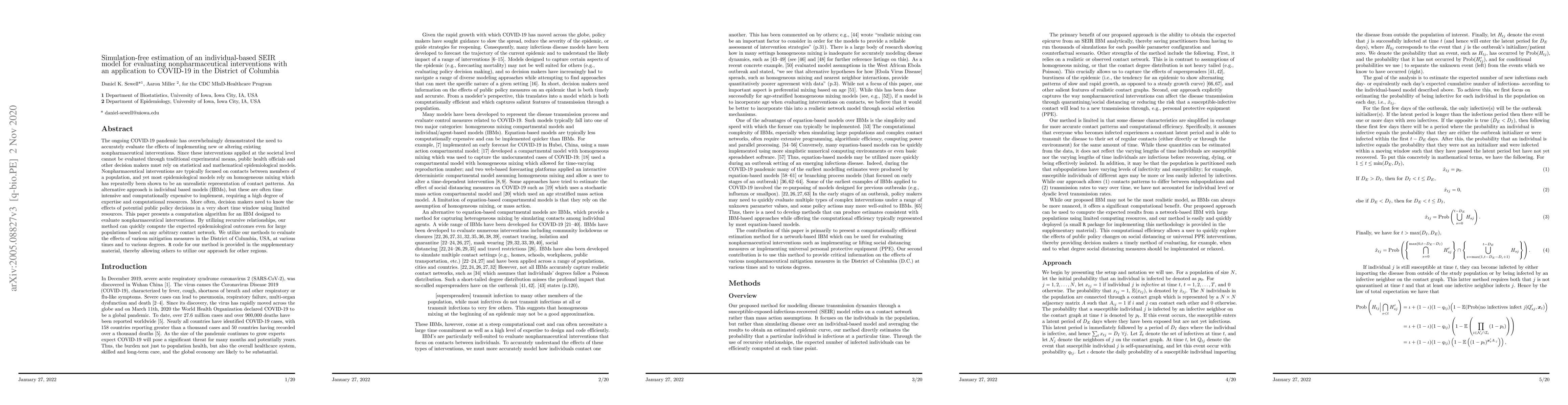 The ongoing COVID-19 pandemic has overwhelmingly demonstrated the need to accurately evaluate the effects of implementing new or altering existing nonpharmaceutical interventions. Since these interventions applied at the societal level cannot be evaluated through traditional experimental means, public health officials and other decision makers must rely on statistical and mathematical epidemiological models. Nonpharmaceutical interventions are typically focused on contacts between members of a population, and yet most epidemiological models rely on homogeneous mixing which has repeatedly been shown to be an unrealistic representation of contact patterns. An alternative approach is individual based models (IBMs), but these are often time intensive and computationally expensive to implement, requiring a high degree of expertise and computational resources. More often, decision makers need to know the effects of potential public policy decisions in a very short time window using limited resources. This paper presents an estimation algorithm for an IBM designed to evaluate nonpharmaceutical interventions. By utilizing recursive relationships, our method can quickly compute the expected epidemiological outcomes even for large populations based on any arbitrary contact network. We utilize our methods to evaluate the effects of relaxing current social distancing measures in Iowa, USA, at various times and to various degrees. \verb!R! code for our method is provided in the supplementary material, thereby allowing others to utilize our approach for other regions.