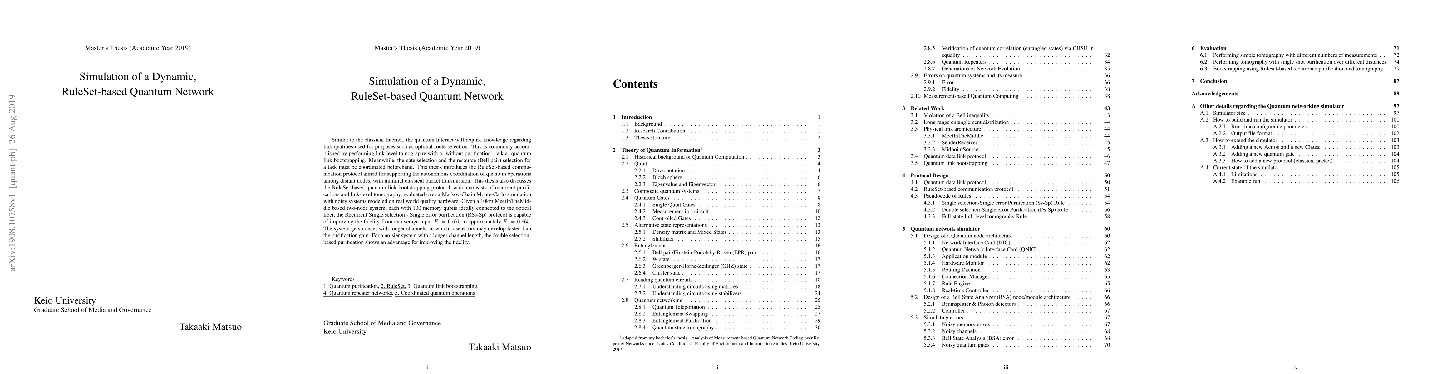 Similar to the classical Internet, the quantum Internet will require knowledge regarding link qualities used for purposes such as optimal route selection. This is commonly accomplished by performing link-level tomography with or without purification -- a.k.a. quantum link bootstrapping. Meanwhile, the gate selection and the resource (Bell pair) selection for a task must be coordinated beforehand. This thesis introduces the RuleSet-based communication protocol aimed for supporting the autonomous coordination of quantum operations among distant nodes, with minimal classical packet transmission. This thesis also discusses the RuleSet-based quantum link bootstrapping protocol, which consists of recurrent purifications and link-level tomography, evaluated over a Markov-Chain Monte-Carlo simulation with noisy systems modeled on real world quality hardware. Given a 10km MeetInTheMiddle based two-node system, each with 100 memory qubits ideally connected to the optical fiber, the Recurrent Single selection - Single error purification (RSs-Sp) protocol is capable of improving the fidelity from an average input $F_{r}=0.675$ to approximately $F_{r}=0.865$. The system gets noisier with longer channels, in which case errors may develop faster than the purification gain. For a noisier system with a longer channel length, the double selection-based purification shows an advantage for improving the fidelity.