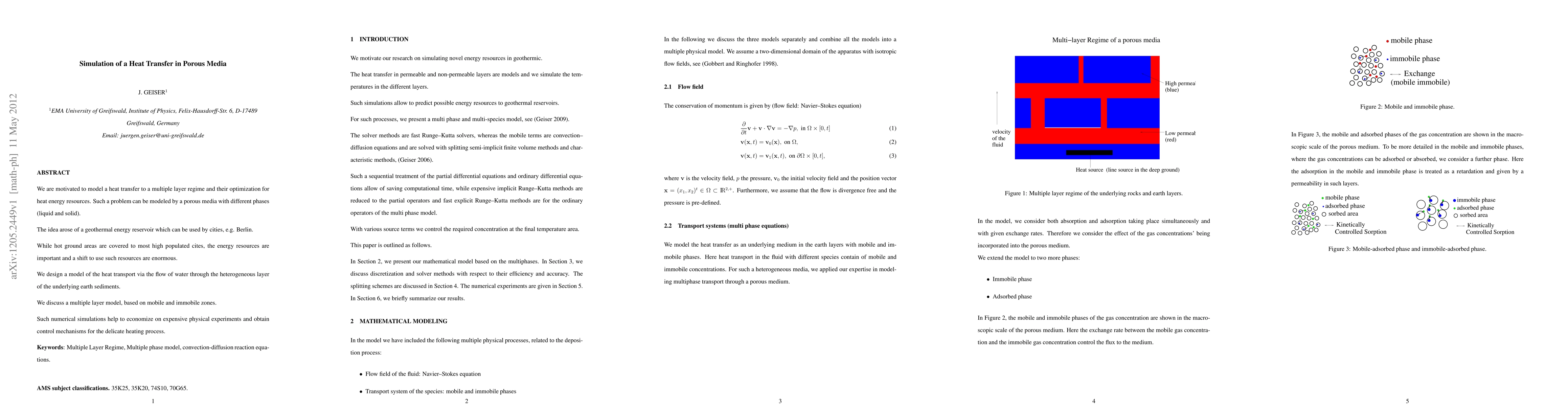 Researchers developed a model to simulate heat transfer in porous media for geothermal energy applications, aiming to optimize heat energy resources for cities like Berlin. The study focused on multiple layer models with mobile and immobile zones to improve efficiency of the heating process.