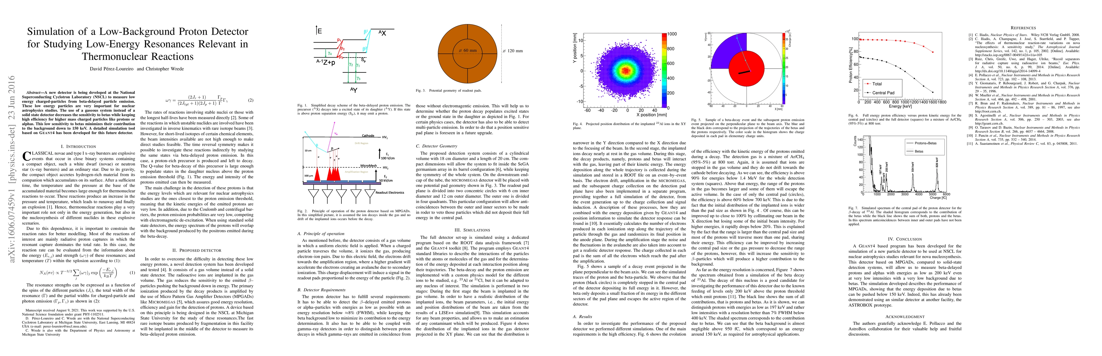 A new gaseous proton detector is being developed at NSCL to study low-energy resonances in thermonuclear reactions, minimizing beta background to 150 keV. A detailed \textsc{Geant4} simulation tool has been created to optimize the detector's performance.