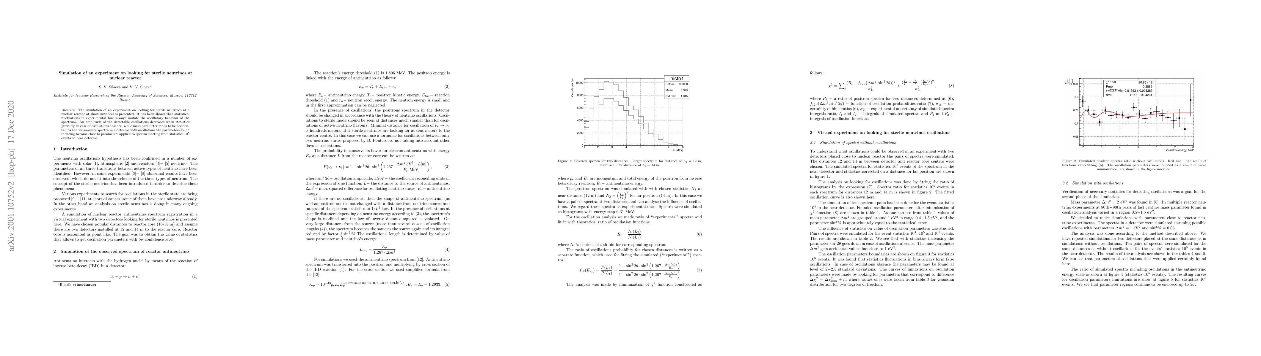 The simulation of an experiment on looking for sterile neutrinos at a nuclear reactor at short distances is presented. It has been shown that statistical fluctuations in experimental bins always imitate the oscillatory behavior of the spectrum. An amplitude of the detectable oscillations decreases when statistics grows up in case of oscillations absence, while mass parameter tends to be accidental. When we simulate spectra in a detector with oscillations the parameters found in fitting become close to parameters applied to spectra starting from statistics 10$^5$ events in near detector.