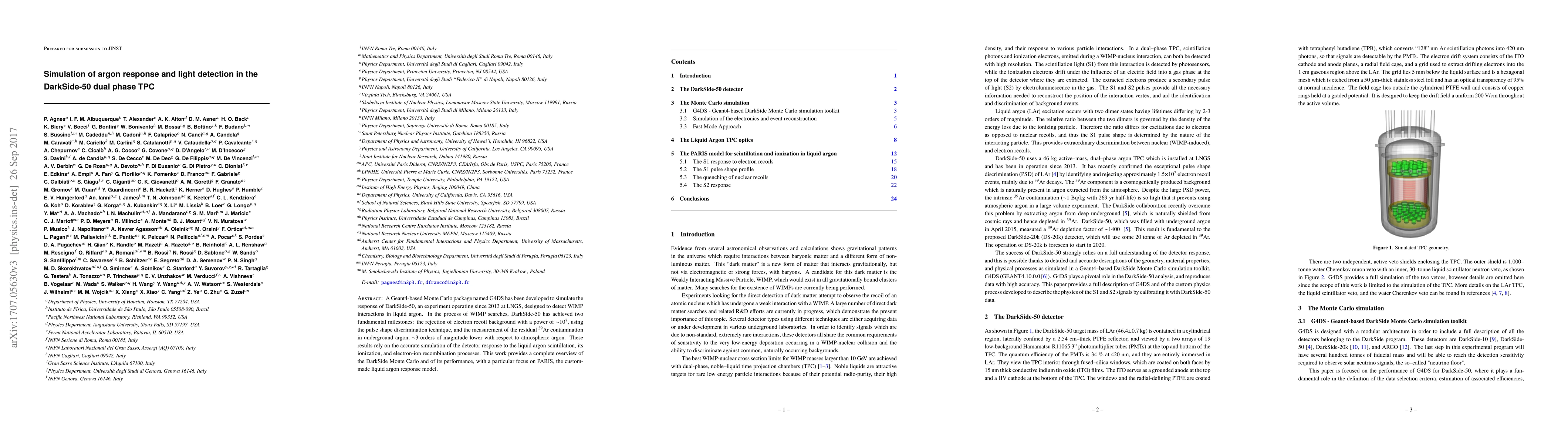 This paper details the development of G4DS, a Geant4-based Monte Carlo simulation for the DarkSide-50 experiment, which aims to detect WIMP interactions using liquid argon. The simulation highlights significant achievements in background rejection and argon contamination measurement, emphasizing the PARIS model for liquid argon response.