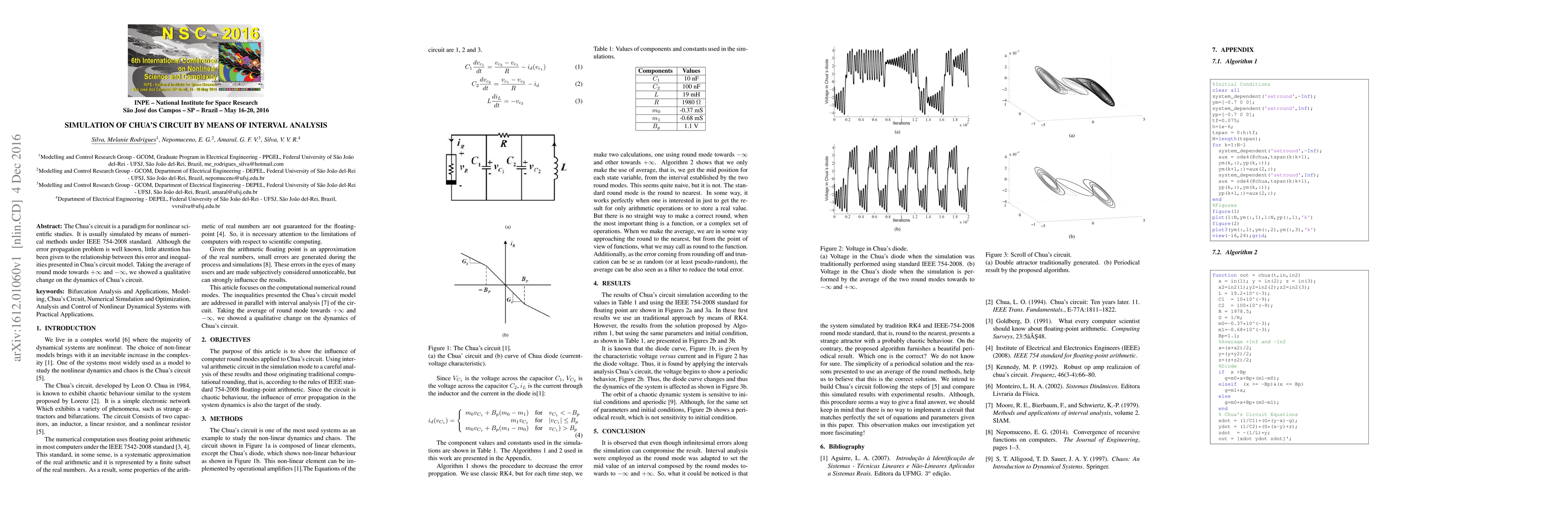 Researchers used interval analysis to simulate Chua's circuit, discovering that errors propagate in a way that alters the circuit's dynamics, particularly when considering extremes of rounding modes.
