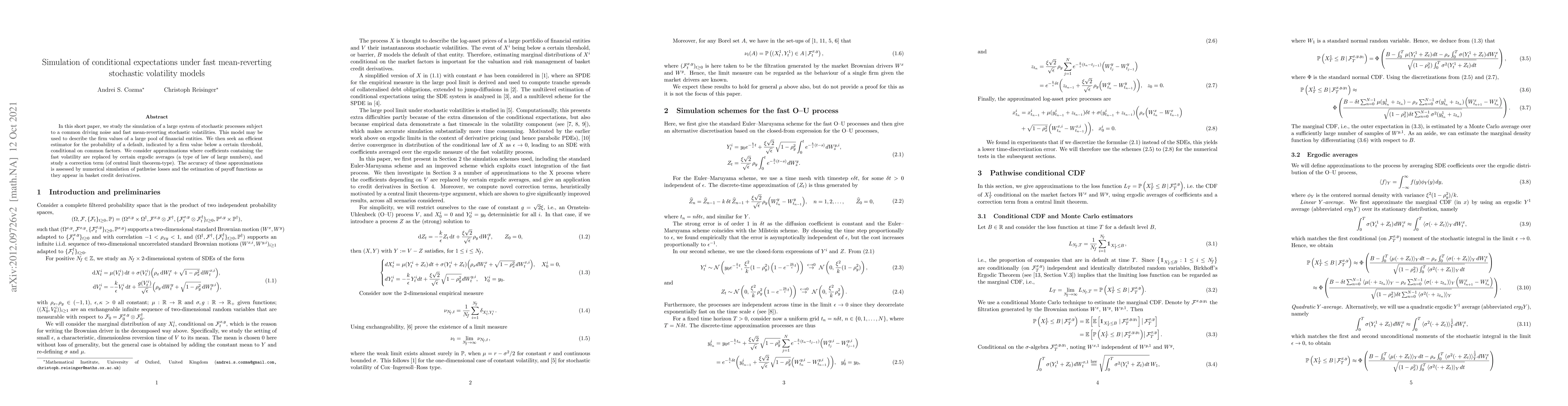 The paper studies the simulation of a large system of stochastic processes with fast mean-reverting stochastic volatilities, approximating coefficients with ergodic averages and introducing a correction term based on the Central Limit Theorem.