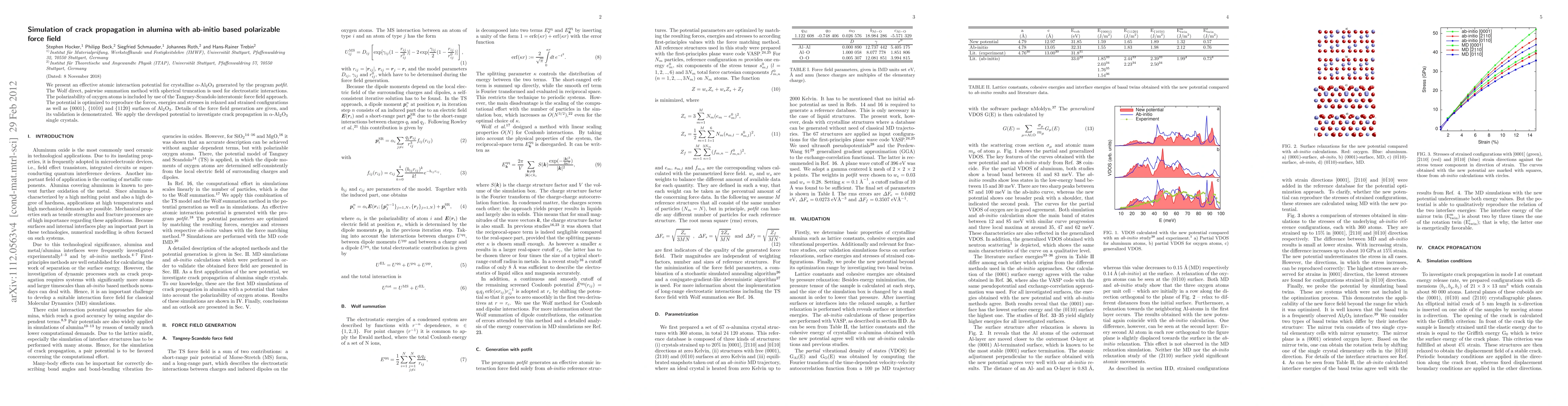 This paper presents an ab-initio based polarizable force field for simulating crack propagation in alpha-Al2O3, optimized to reproduce material properties and validated through surface energy calculations. The study uses the developed potential to investigate crack behavior in Al2O3 single crystals.