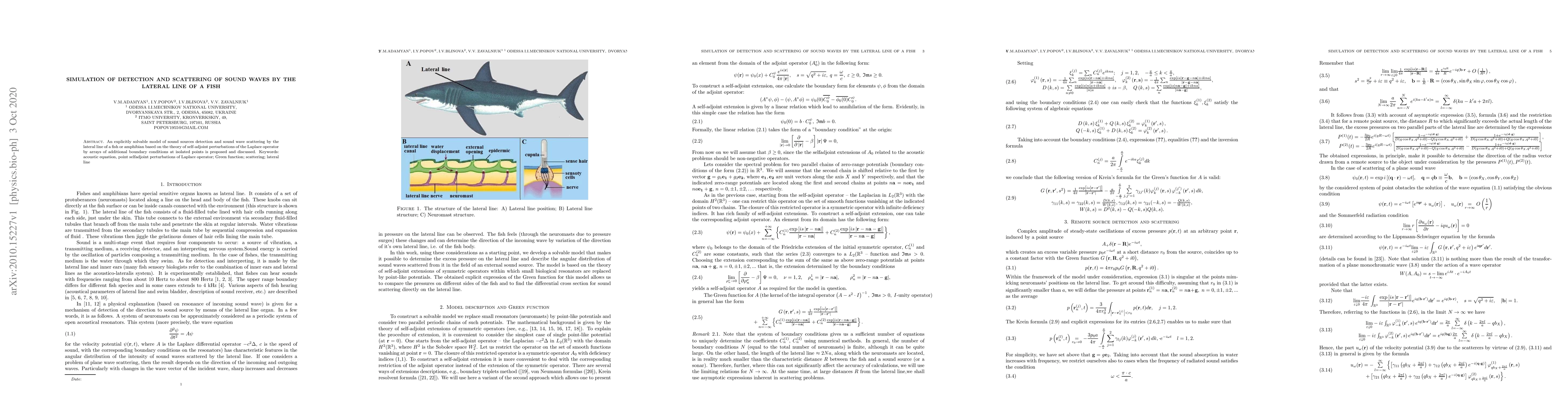 Researchers developed a mathematical model to simulate how fish detect sound waves and scatter them using their lateral line, proposing a new method based on self-adjoint perturbations of the Laplace operator.
