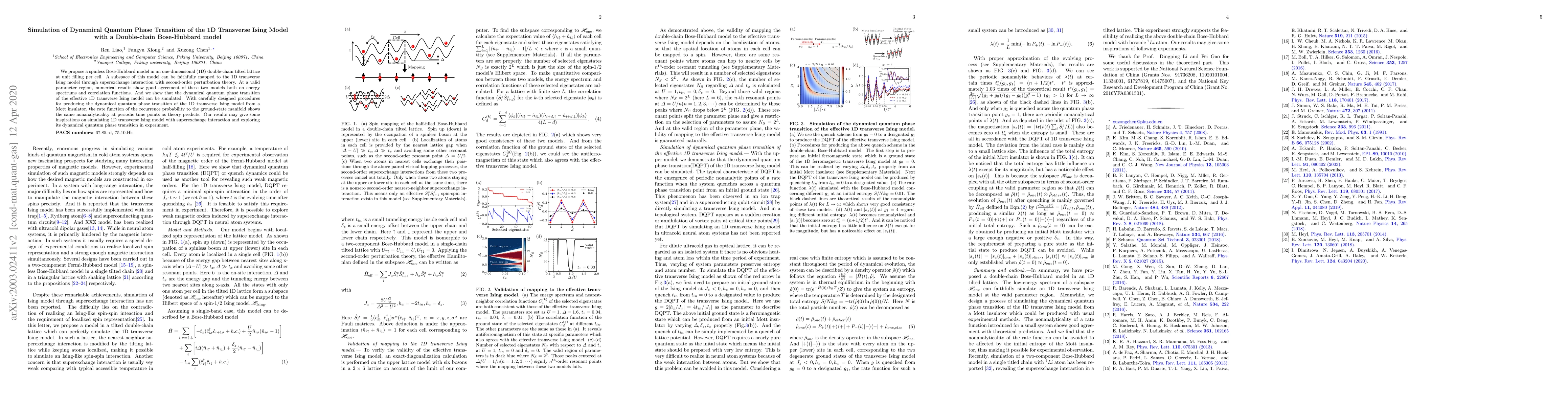 This paper proposes a spinless Bose-Hubbard model on a 1D double-chain tilted lattice to simulate the dynamical quantum phase transition of the 1D transverse Ising model. The simulation shows good agreement between the two models and demonstrates the recurrence probability's nonanalyticality at periodic time points, providing insights for experimental explorations.