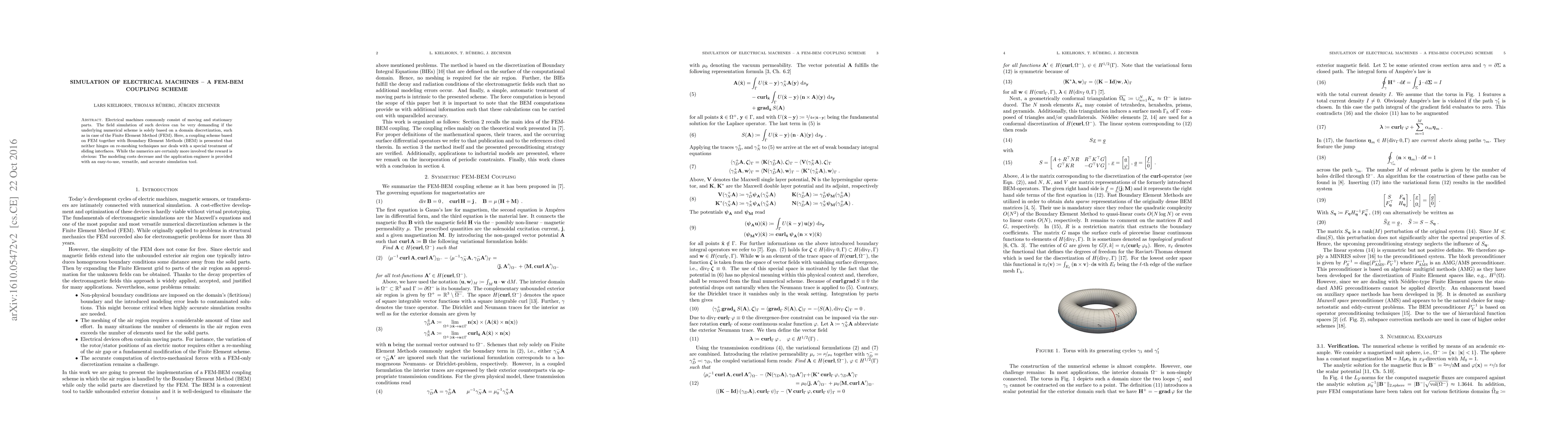 Electrical machines commonly consist of moving and stationary parts. The field simulation of such devices can be very demanding if the underlying numerical scheme is solely based on a domain discretization, such as in case of the Finite Element Method (FEM). Here, a coupling scheme based on FEM together with Boundary Element Methods (BEM) is presented that neither hinges on re-meshing techniques nor deals with a special treatment of sliding interfaces. While the numerics are certainly more involved the reward is obvious: The modeling costs decrease and the application engineer is provided with an easy-to-use, versatile, and accurate simulation tool.