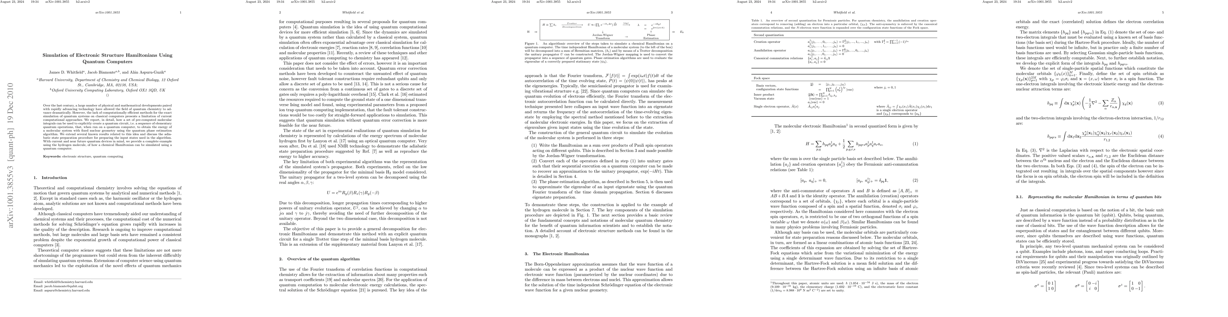 This paper details a method for simulating electronic structure Hamiltonians using quantum computers, leveraging pre-computed molecular integrals to create quantum circuits that execute the quantum phase estimation algorithm. It provides a complete example using the hydrogen molecule to demonstrate the practical application of this approach.