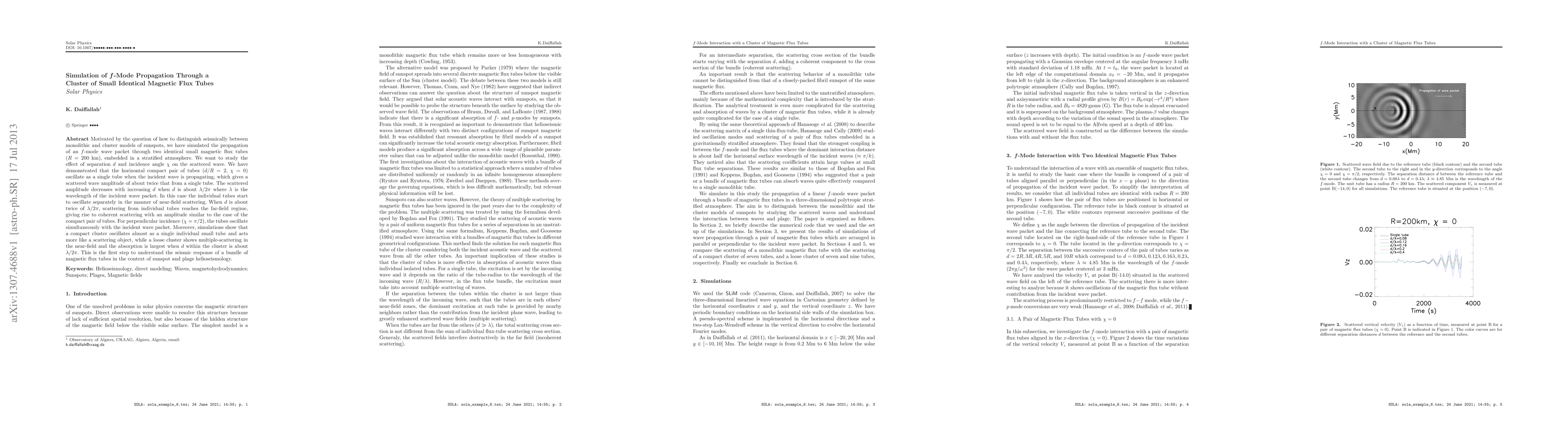This study simulates the propagation of an $f$-mode wave packet through a cluster of small magnetic flux tubes to distinguish between monolithic and cluster sunspot models. The results show that the scattered wave amplitude varies with the separation and incidence angle, indicating complex scattering behaviors depending on the configuration of the flux tubes.